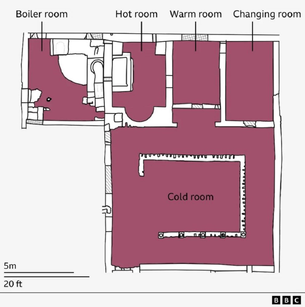 Αρχαιολόγοι έφεραν στο φως ένα πολυτελές ιδιωτικό λουτρό, πιθανώς το μεγαλύτερο που έχει βρεθεί ποτέ στην περιοχή. Το σύμπλεγμα περιλαμβάνει θερμά, χλιαρά και ψυχρά δωμάτια, εντυπωσιακή τέχνη και μια τεράστια δεξαμενή νερού.