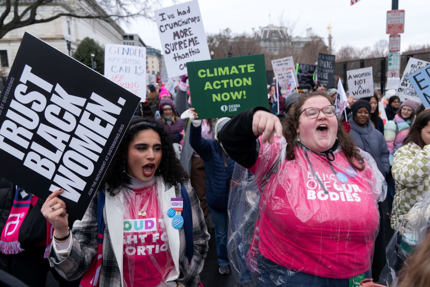 Γυναίκες που συγκεντρώθηκαν στην Ουάσιγκτον για να συμμετάσχουν στην Πορεία του Λαού είπαν στο BBC ότι είχαν διάφορα κίνητρα. Μια διαδηλώτρια, η Μπρουκ, είπε ότι ήθελε να δείξει την υποστήριξή της για το δικαίωμα στην άμβλωση.