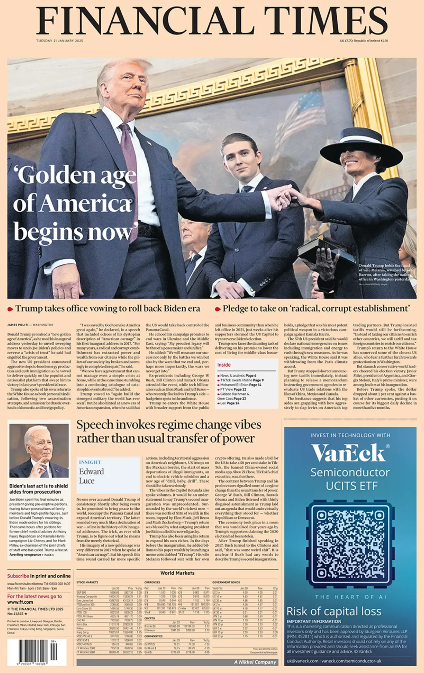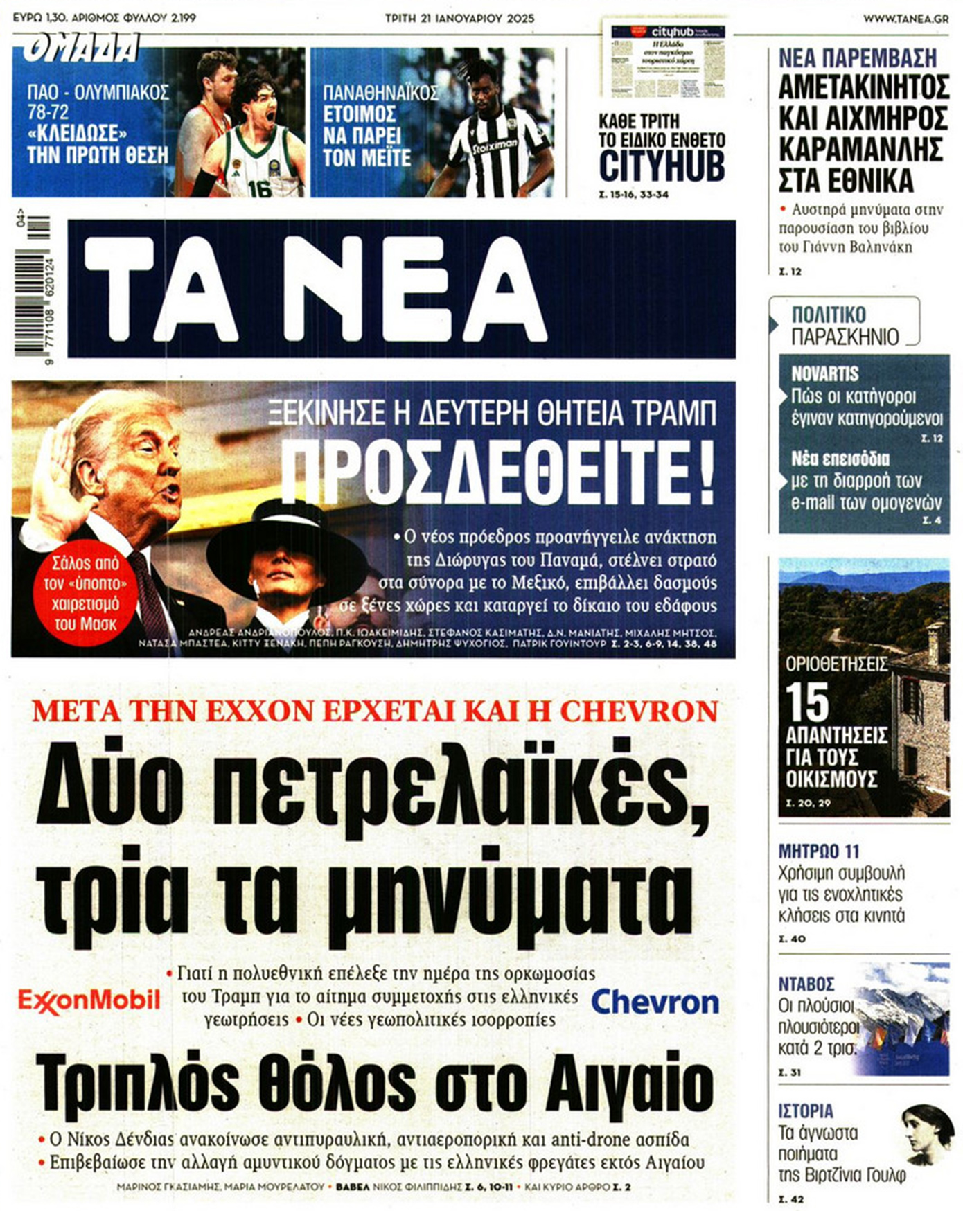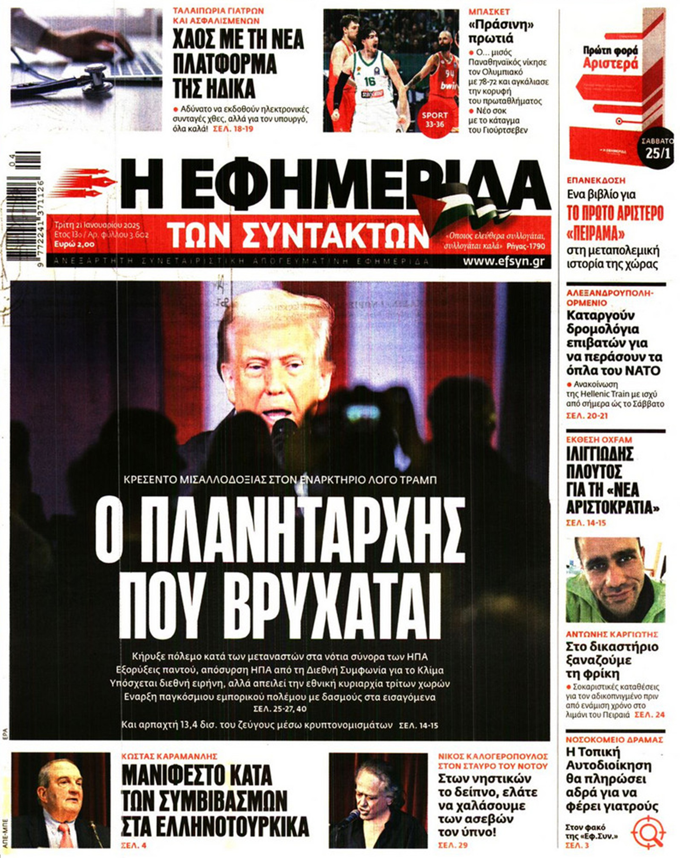 «Ο Ντόναλντ Τραμπ επέστρεψε» είναι ο τίτλος σε αρκετά πρωτοσέλιδα του διεθνούς Τύπου σήμερα, λίγες ώρες μετά την ορκωμοσία του. Είναι η δεύτερη θητεία του στο αξίωμα και η είδηση, όπως ήταν αναμενόμενο, πρωταγωνιστεί στις πρώτες σελίδες.