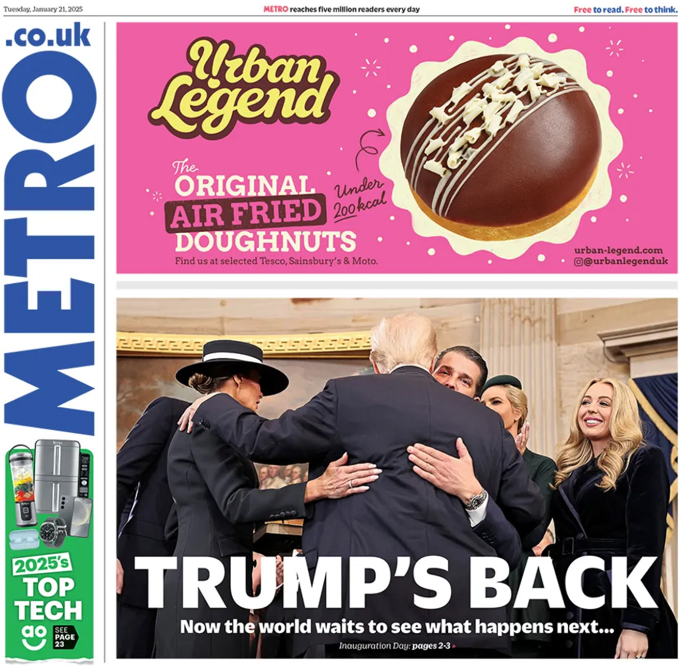 «Ο Τραμπ επέστρεψε. Τώρα ο κόσμος περιμένει να δει τι θα ακολουθήσει…», γράφει η βρετανική Metro.