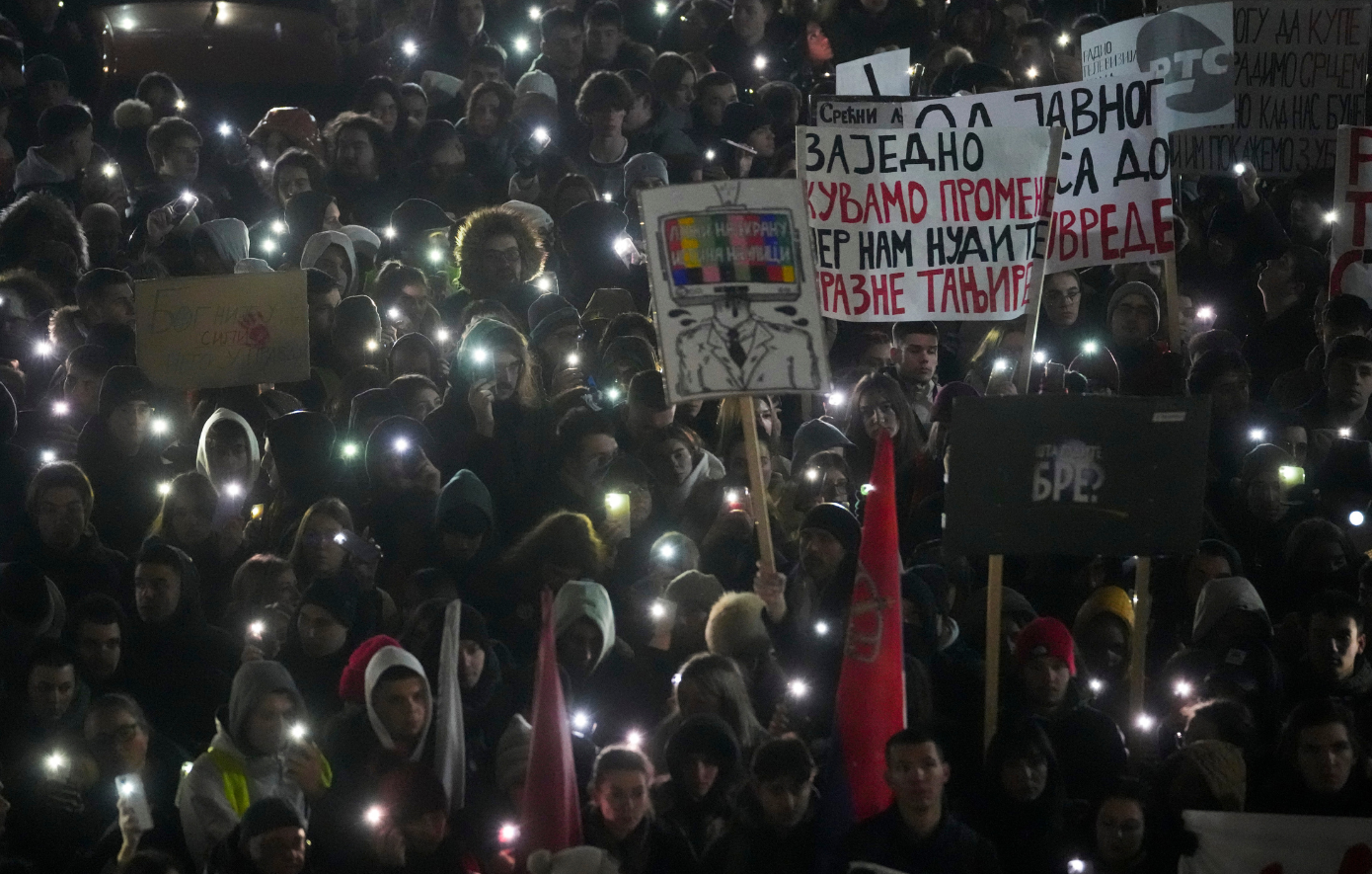 Η Deutsche Welle έγραψε ότι οι διαδηλώσεις είναι σε εξέλιξη εδώ και τρεις μήνες, με αφορμή την κατάρρευση του στεγάστρου του σιδηροδρομικού σταθμού του Νόβι Σαντ, τον περασμένο Νοέμβριο, που στοίχισε τη ζωή σε 15 ανθρώπους και τραυμάτισε σοβαρά ακόμη δύο. Οι διαδηλώσεις αυξάνονται μέρα με τη μέρα και μαζί με την παρεμπόδιση της κυκλοφορίας και τα αφιερώματα στα θύματα του συμβάντος έχουν γίνει μέρος της καθημερινότητας σε ολόκληρη τη χώρα. Οι φοιτητές έχουν αποκλείσει σχεδόν όλες τις σχολές των τριών μεγαλύτερων εθνικών πανεπιστημίων, απαιτώντας, μεταξύ άλλων, την παραίτηση του πρωθυπουργού και του δημάρχου του Νόβι Σαντ.