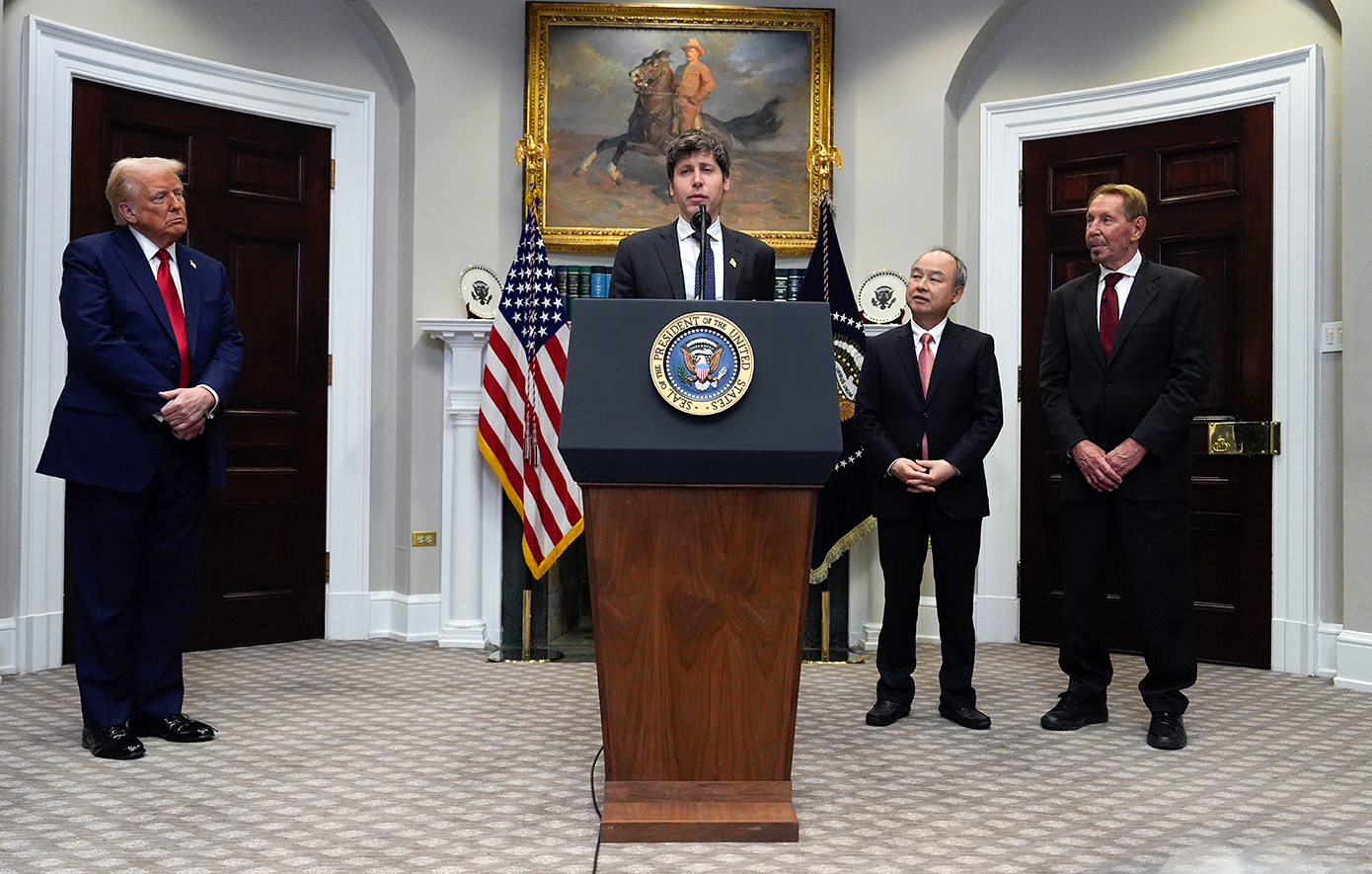 Ο Ντόναλντ Τραμπ χαρακτήρισε το σχέδιο ύψους 100 δισ. δολαρίων ως μια «ηχηρή δήλωση εμπιστοσύνης στις δυνατότητες της Αμερικής», υποδεχόμενος στον Λευκό Οίκο τον διευθύνοντα σύμβουλο της Softbank, Masayoshi Son, τον CEO του OpenAI, Sam Altman και τον συνιδρυτή της Oracle, Larry Ellison. Η κοινοπραξία, με την ονομασία Stargate, σκοπεύει να επενδύσει 500 δισ. δολάρια τα επόμενα τέσσερα χρόνια.