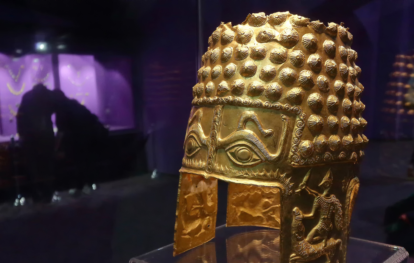 Οι δράστες, όπως αναφέρει το BBC, άρπαξαν με τρία δακικά σπειροειδή βραχιόλια αλλά και το κεντρικό κομμάτι της έκθεσης, το εντυπωσιακά διακοσμημένο χρυσό κράνος του Κοτοφενέστι, το οποίο χρονολογείται περίπου στο 450 π.Χ.