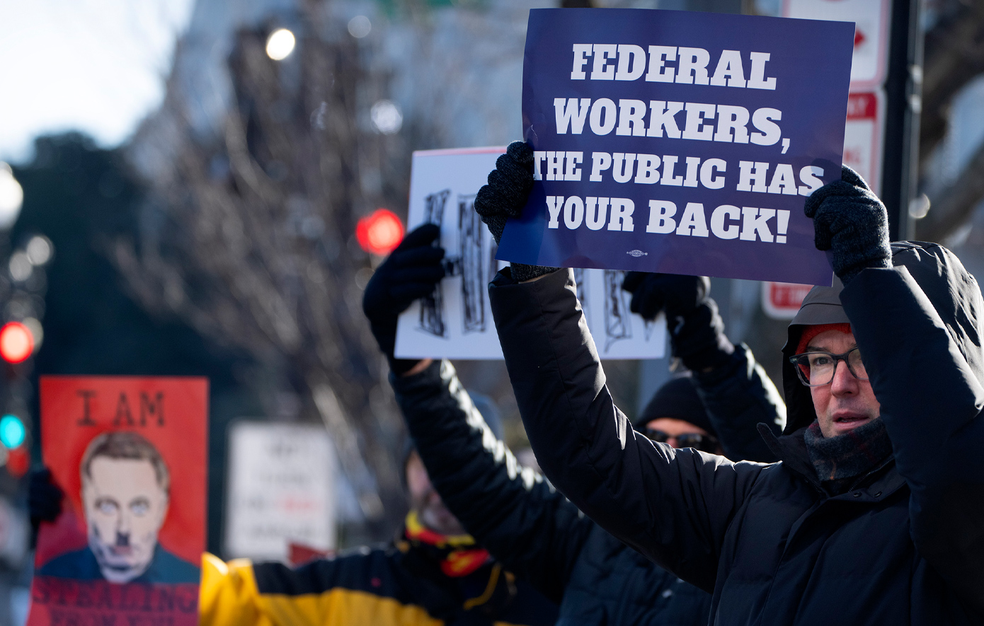 Ομοσπονδιακοί εργαζόμενοι, μέλη της κοινότητας και άλλοι βγήκαν στους δρόμους της Ουάσιγκτον και άλλων πόλεων ανά τις ΗΠΑ προκειμένου να διαμαρτυρηθούν για τις πρόσφατες ομοσπονδιακές απολύσεις, περικοπές χρηματοδότησης και άλλες πολιτικές που εφαρμόστηκαν από την κυβέρνηση Τραμπ τις πρώτες εβδομάδες της δεύτερης θητείας του.