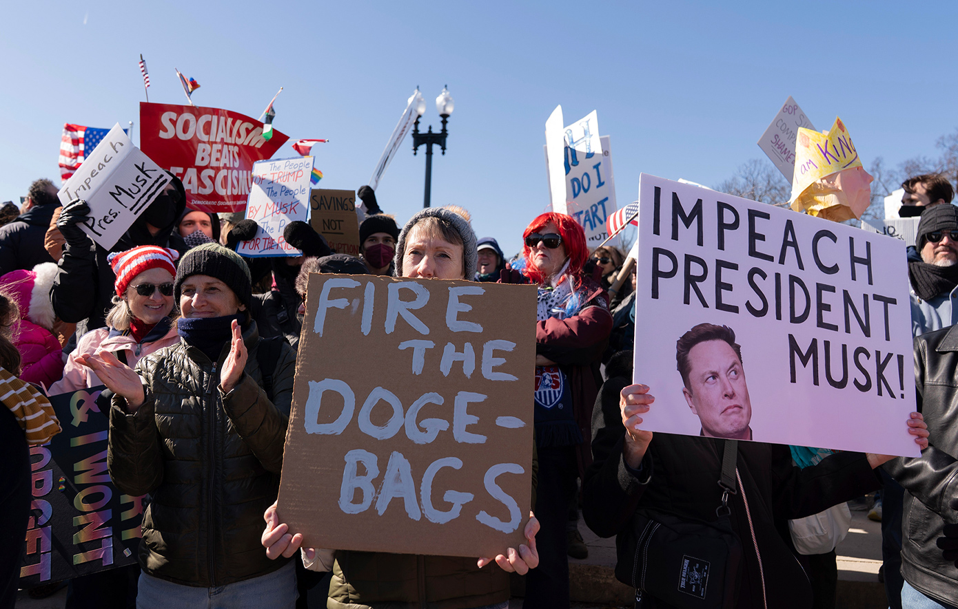 Σύμφωνα με δημοσίευμα του abc News, ο κόσμος διαδηλώνει επειδή ο Έλον Μασκ ως σύμβουλος της κυβέρνησης προχώρησε σε μαζικές απολύσεις, υποστηρίζοντας ότι με αυτό τον τρόπο οι ΗΠΑ θα εξοικονομήσουν χρήματα.