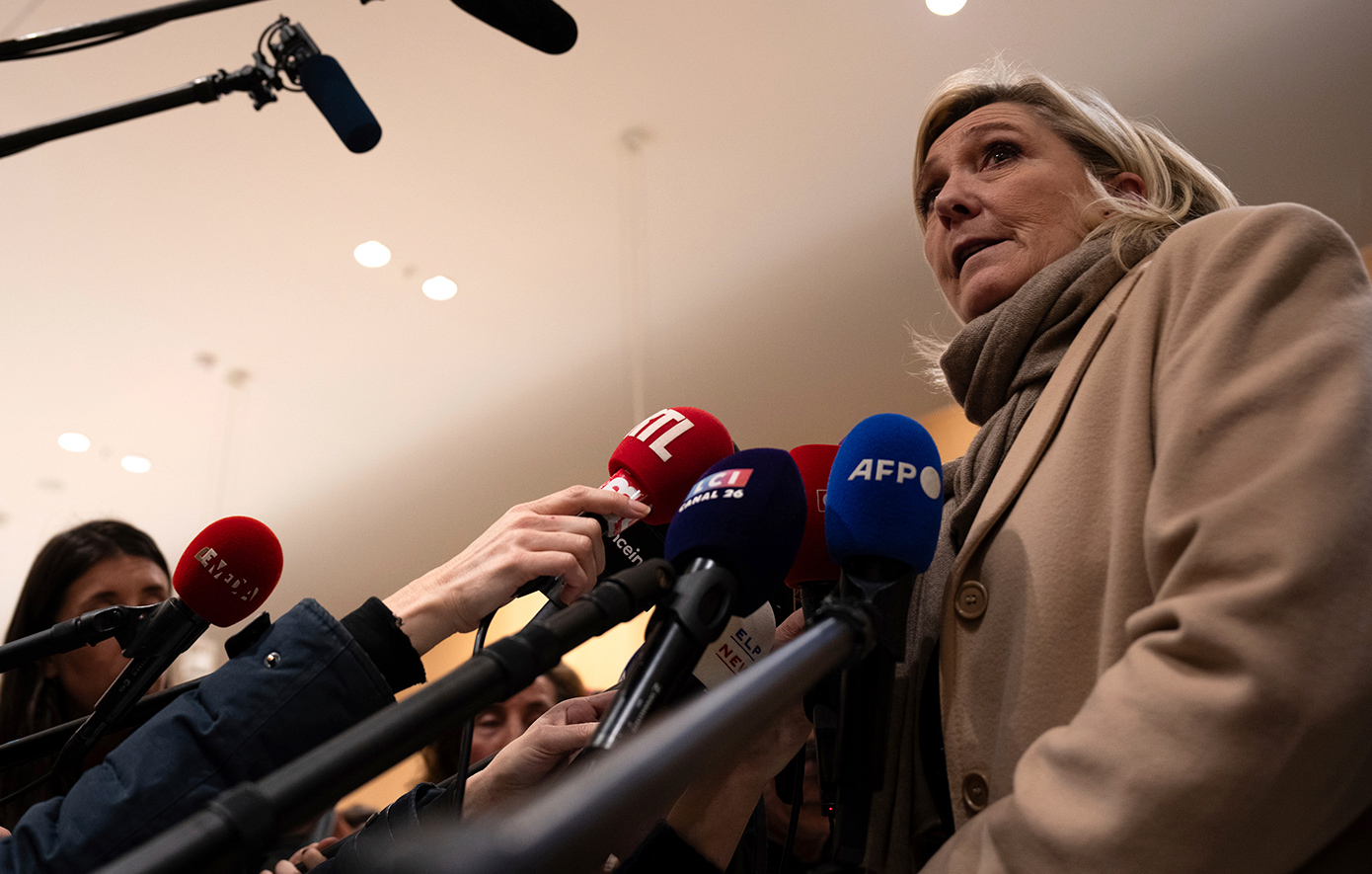 Η Vohra εξηγεί πως η Λεπέν όντας αποφασισμένη να γίνει η επόμενη πρόεδρος της Γαλλίας χρειάζεται την υποστήριξη ακόμα και εκείνων που απεχθάνονται τον Τραμπ. Σύμφωνα με δημοσκόπηση που διεξήγαγε η συμβουλευτική εταιρεία Elabe πέρυσι, 8 στους 10 Γάλλους που συμμετείχαν στην έρευνα είχαν κακή εικόνα για τον νέο πρόεδρο των ΗΠΑ και ο αριθμός αυτός αναμένεται να αυξηθεί, όταν ακόμη και εκείνοι που μπορεί να εγκρίνουν τις αντιμεταναστευτικές του απόψεις αρχίσουν να πλήττονται αρνητικά από τους δασμούς του.