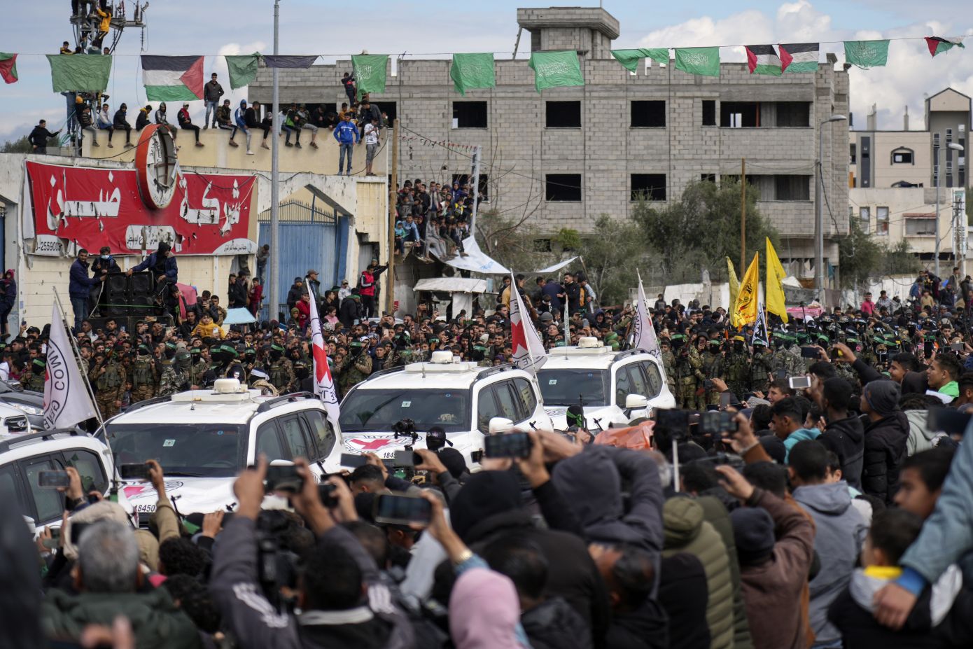 Η Χαμάς παρέδωσε το μεσημέρι σε εκπροσώπους του Ερυθρού Σταυρού στη Νουσεϊράτ της κεντρικής Γάζας τρεις ισραηλινούς ομήρους, τους Ελίγια Κοέν, Ομερ Σεμ Τοβ, και Ομερ Βενκέρτ, όπως προκύπτει από πλάνα που μεταδίδονται ζωντανά.