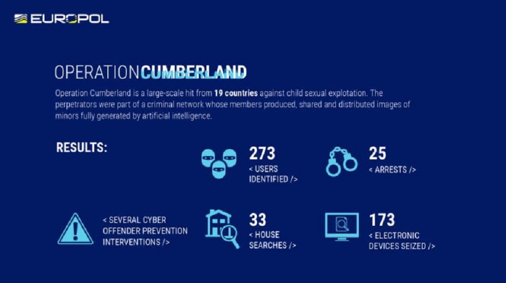 Η Europol πραγματοποίησε παγκόσμια επιχείρηση κατά της παιδικής πορνογραφίας που παράγεται μέσω τεχνητής νοημοσύνης και προχώρησε στην ταυτοποίηση 273 υπόπτων.