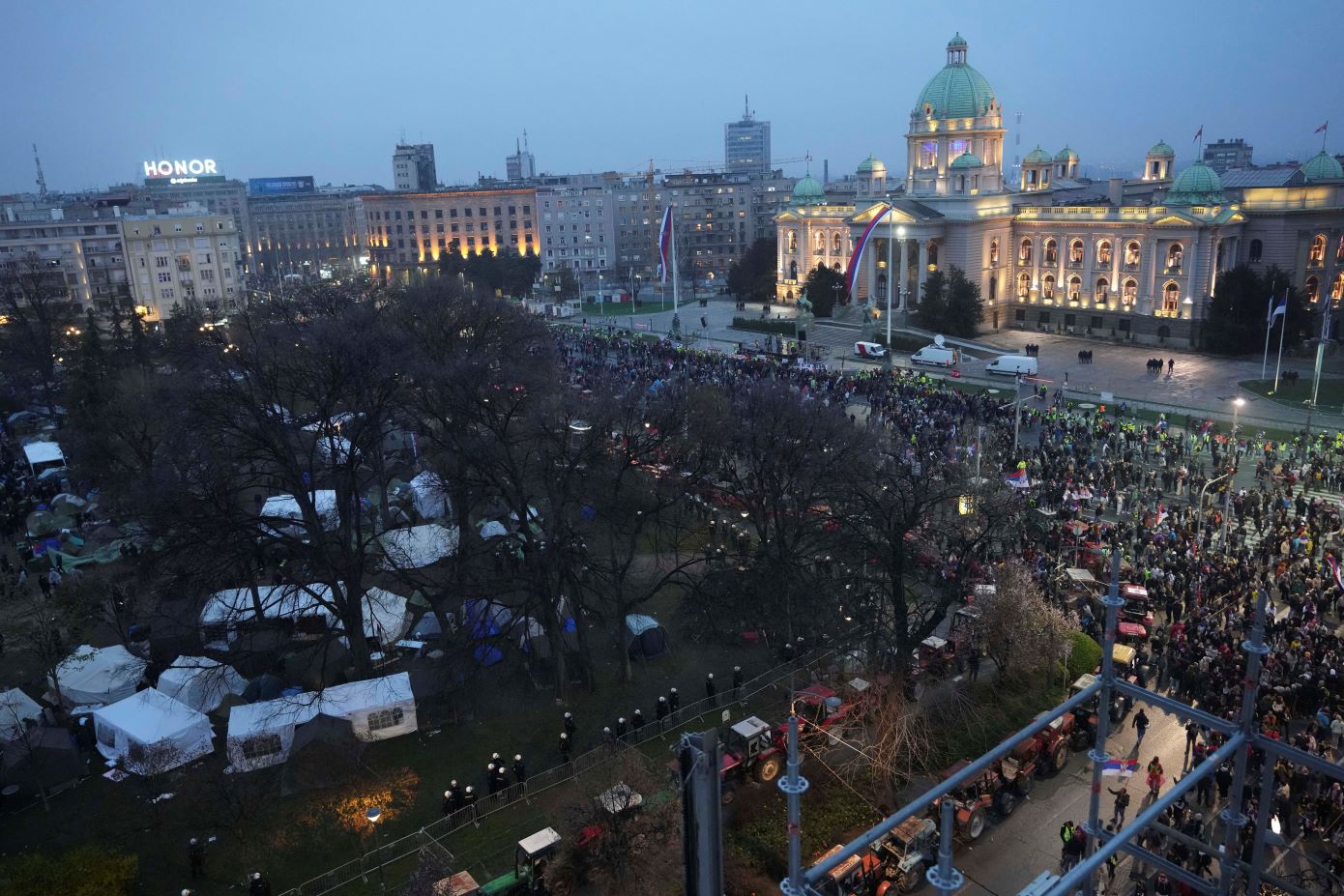 Δεκάδες αγρότες στο τιμόνι των τρακτέρ τους έχουν καταφθάσει για να υποστηρίξουν τους σέρβους φοιτητές. Άλλα τρακτέρ, που ανήκουν σε υποστηρικτές της κυβέρνησης, έχουν σταθμεύσει από χθες κοντά στο κτίριο της σερβικής προεδρίας.
