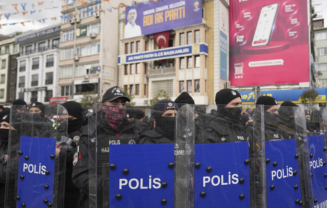 Μπροστά από το αρχηγείο της αστυνομίας όπου κρατείται ο Ιμάμογλου από τα ξημερώματα, εκατοντάδες άνθρωποι, σε απόσταση από αστυνομικά φράγματα, συγκεντρώθηκαν για να φωνάξουν «Ιμάμογλου, δεν είσαι μόνος!», «Κυβέρνηση Παραιτήσου!» ή «Μια μέρα η ζυγαριά θα γείρει και το AKP (σ.σ. το κυβερνών κόμμα) θα λογοδοτήσει στον λαό».