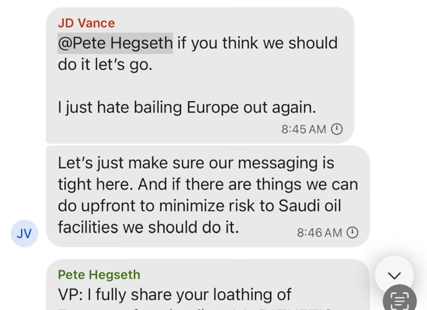 Ο Χέγκσεθ ο οποίος τάχθηκε υπέρ των επιθέσεων είπε στον Βανς: «Συμμερίζομαι πλήρως την απέχθειά σας για τους ευρωπαίους τζαμπατζήδες. Είναι θλιβερό».