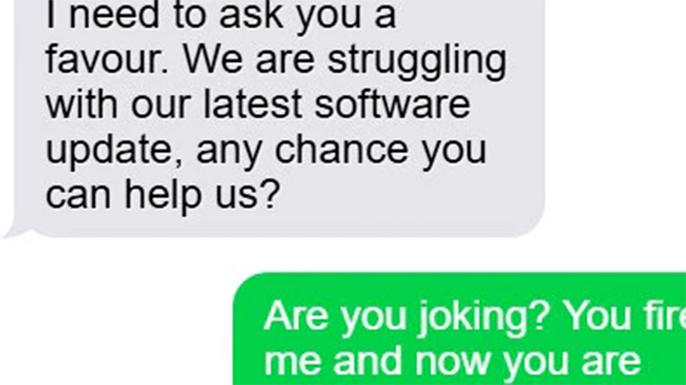«Πρέπει να σου ζητήσω μια χάρη», είπε το αφεντικό στέλνοντας μήνυμα στον πρώην εργαζόμενο. Στη συνέχεια εξήγησε ότι η ομάδα δυσκολευόταν με την τελευταία ενημέρωση λογισμικού και χρειαζόταν τη βοήθειά του για την επίλυση του ζητήματος.
