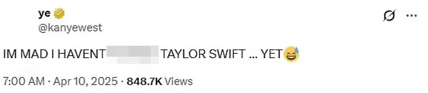 Ο αμφιλεγόμενος ράπερ έκανε προσβλητικές αναρτήσεις για Τέιλορ Σουίφτ: «Είμαι τσαντισμένος που δεν έχω γ…. την Τέιλορ Σουίφτ… ακόμα». Επιπλέον, επανέφερε στο προσκήνιο την παλιά τους διαμάχη, ισχυριζόμενος ότι η Σουίφτ είναι υπεύθυνη για το γεγονός ότι δεν έχει κληθεί ποτέ να εμφανιστεί στο ημίχρονο του Super Bowl, ένα από τα πιο δημοφιλή μουσικά γεγονότα παγκοσμίως