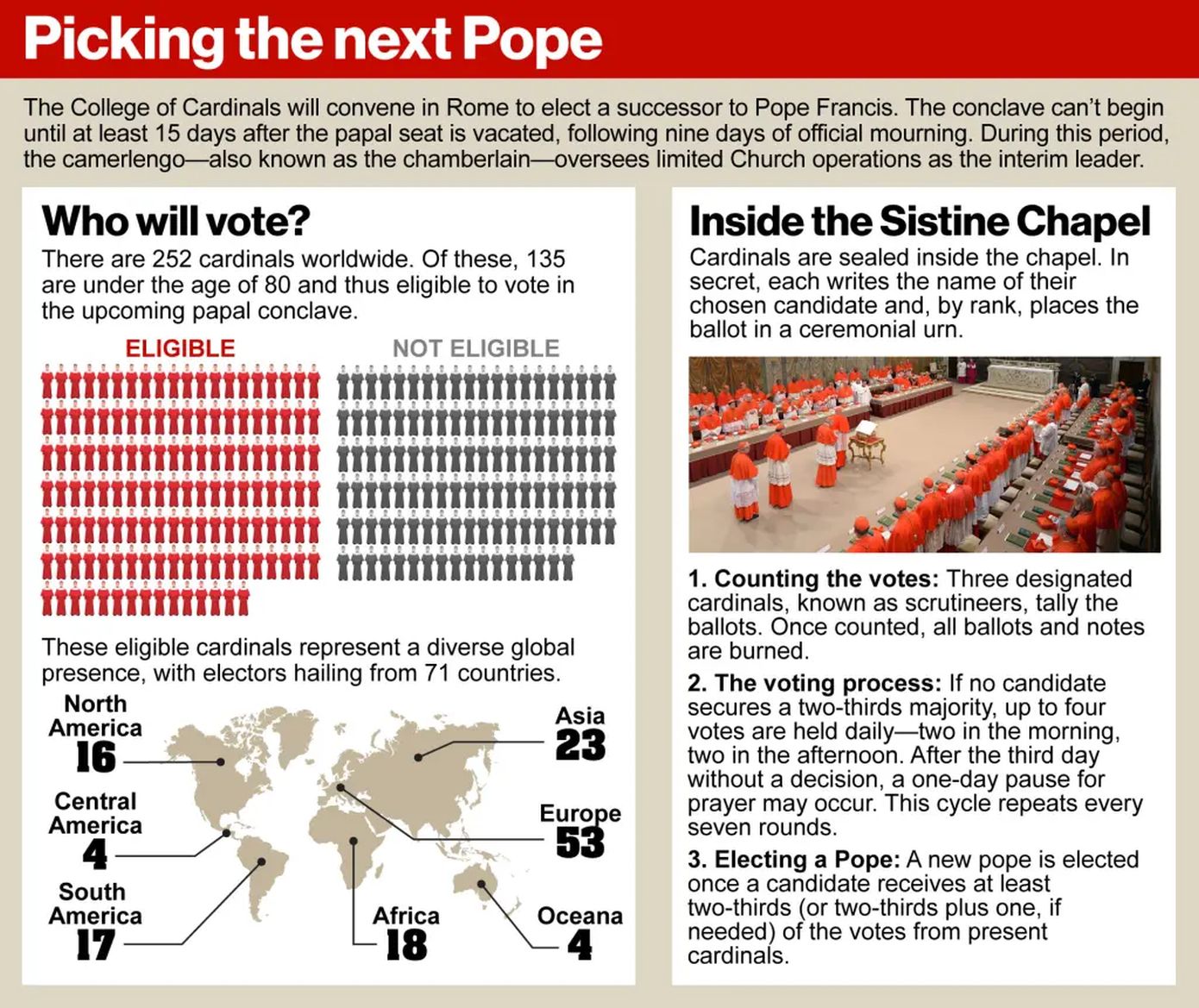 Μετά την κηδεία, ένα κονκλάβιο καρδιναλίων θα συνέλθει για να εκλέξει τον διάδοχό του.