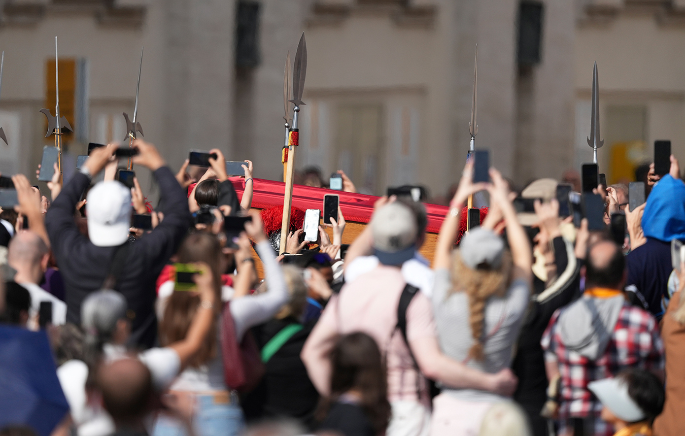 Πλήθος πιστών βρίσκεται στην πλατεία του Αγίου Πέτρου στο Βατικανό, όπου ολοκληρώθηκε σήμερα το πρωί η τελετή μεταφοράς του σκηνώματος του εκλιπόντα πάπα Φραγκίσκου, από τον ξενώνα της Αγίας Μάρθας, στο εσωτερικό της βασιλικής του Αγίου Πέτρου. Εκεί τίθεται σε λαϊκό προσκύνημα για τους πιστούς που θέλουν να πουν το τελευταίο αντίο στον αγαπητό τους «ποντίφικα των φτωχών».