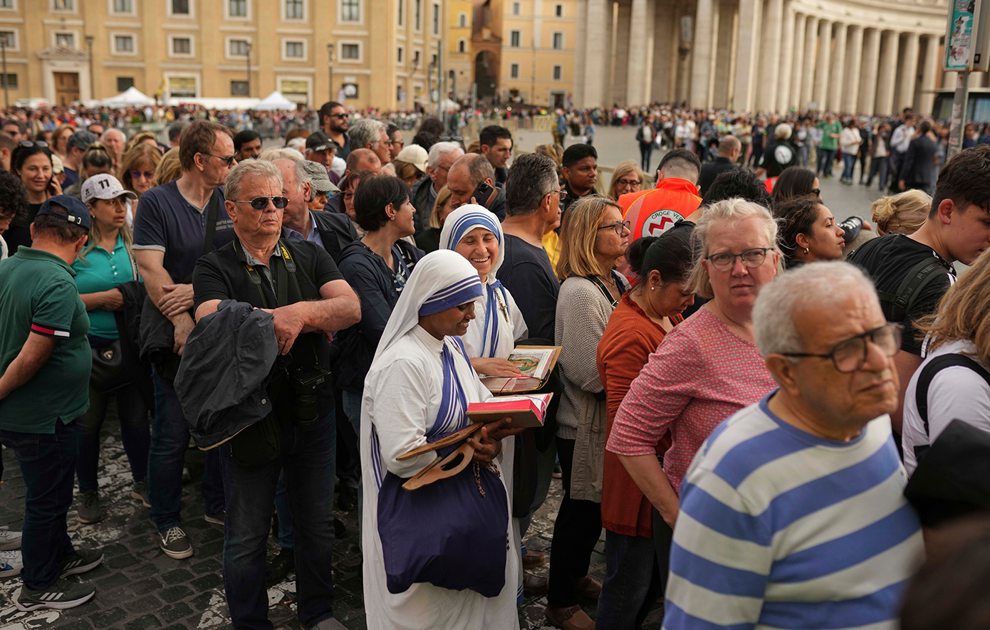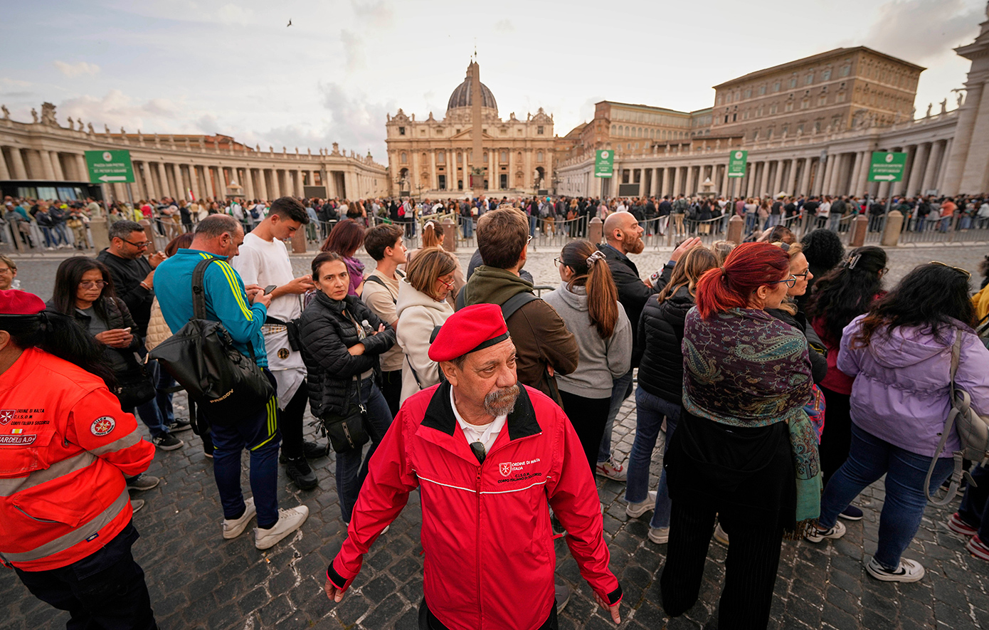 Δεκάδες χιλιάδες πιστοί έχουν παραταχθεί για να αποχαιρετήσουν τον πάπα Φραγκίσκο, η σορός του οποίου εκτίθεται σε ανοιχτό φέρετρο στη βασιλική του Αγίου Πέτρου.