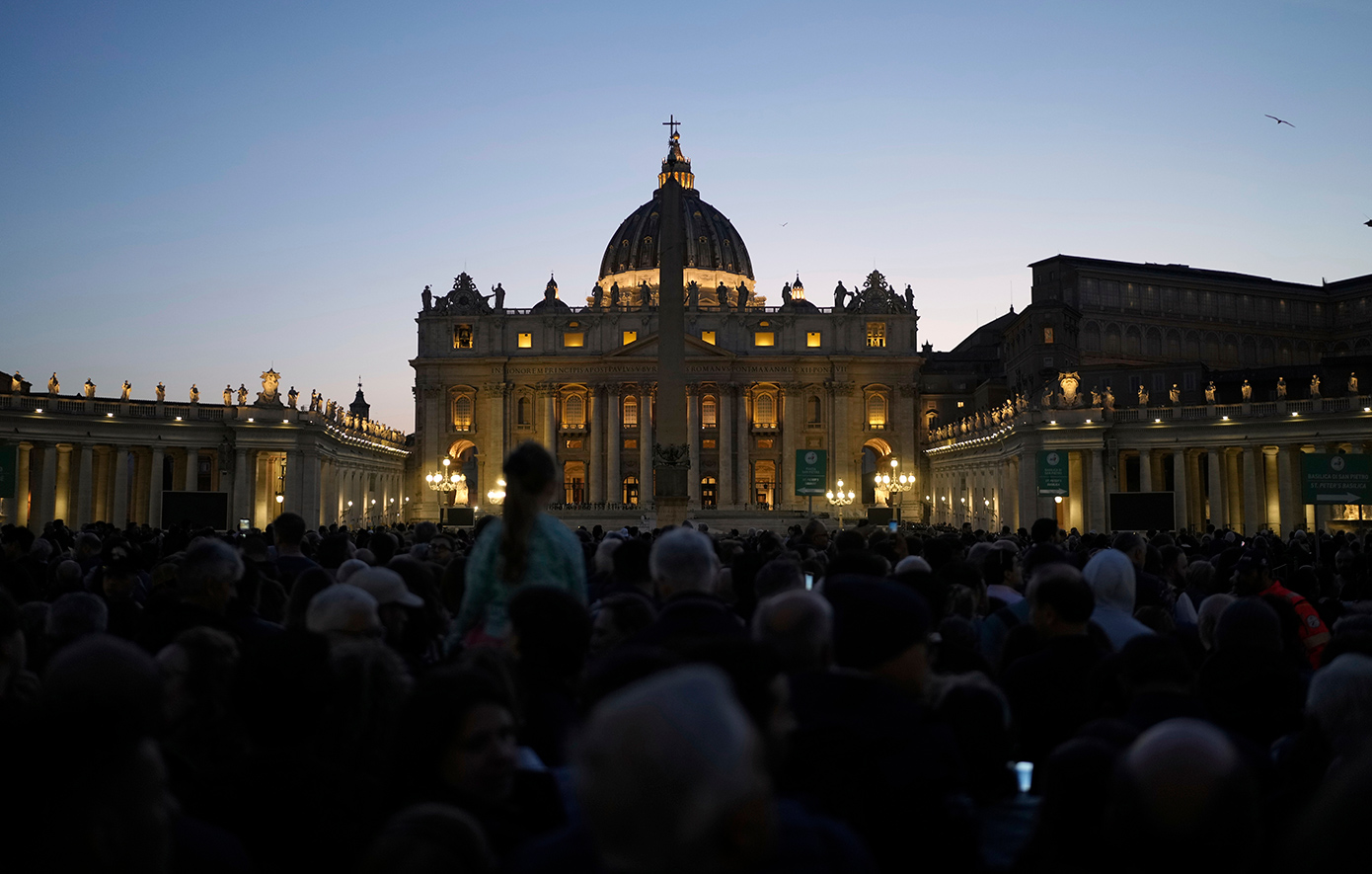 Η αστυνομία του Βατικανού δήλωσε στο BBC ότι η βασιλική του Αγίου Πέτρου θα παρέμενε ανοιχτή όλη τη νύχτα, ώστε το μεγάλο πλήθος που έχει συγκεντρωθεί στην πλατεία να έχει την ευκαιρία να περάσει μπροστά από το φέρετρο.