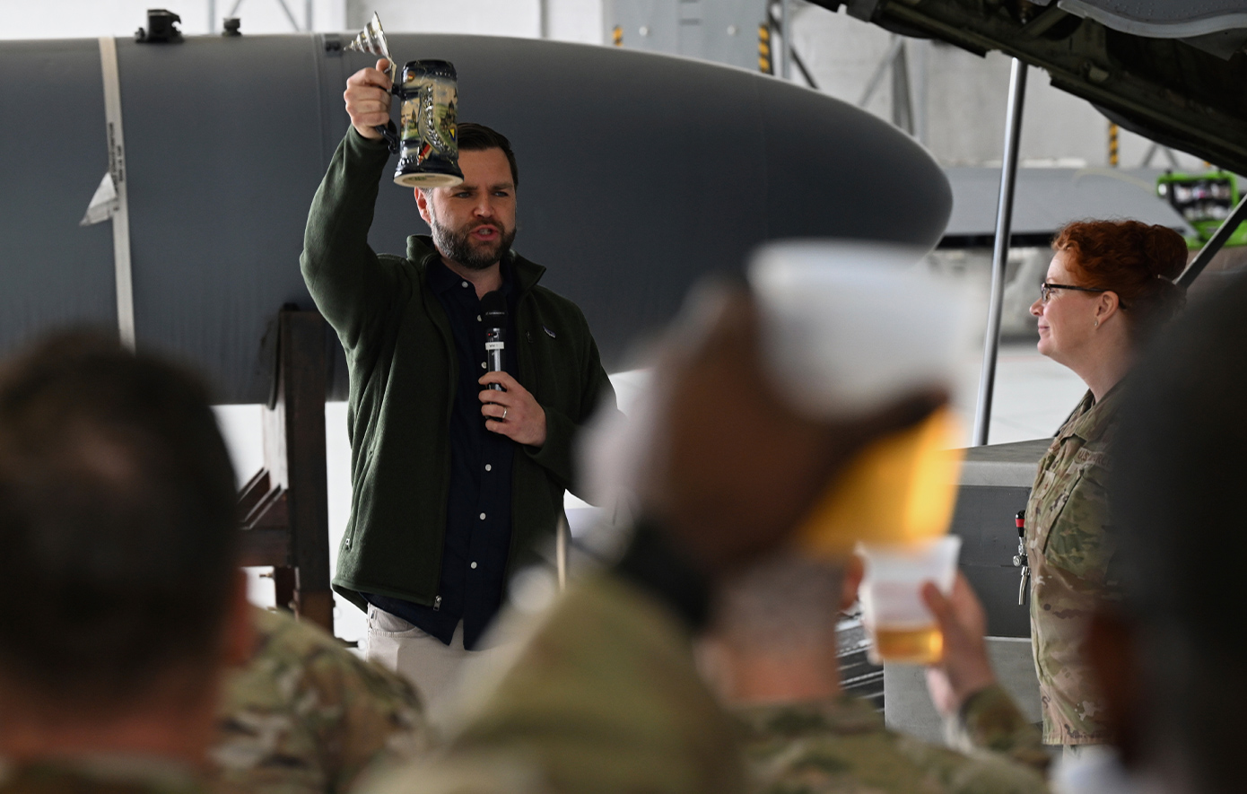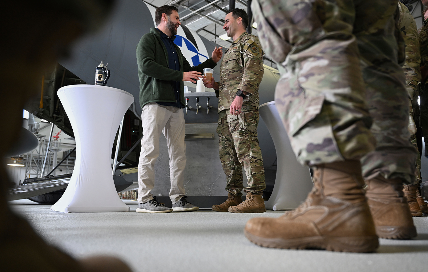 Ο αντιπρόεδρος των ΗΠΑ, Τζέι Ντι Βανς, έκανε μια ολιγόωρη στάση στην αμερικανική αεροπορική βάση Ράμσταϊν στη Γερμανία, κατά την πτήση της επιστροφής του από την Ινδία.