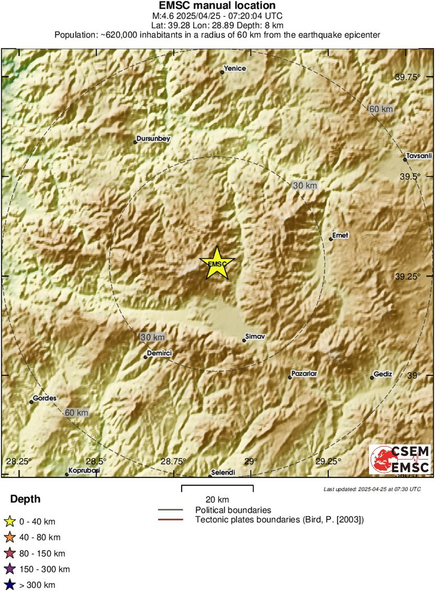 Το επίκεντρο του σεισμού, ο οποίος σημειώθηκε το πρωί της Παρασκευής, εντοπίζεται κοντά στην Κιουτάχεια.