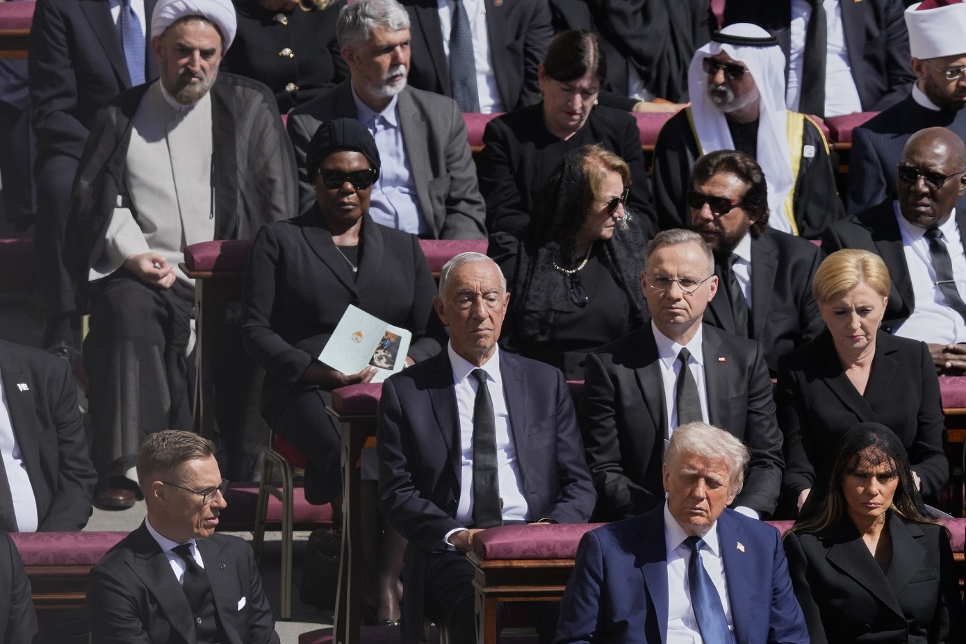 Το πού θα καθίσουν οι ηγέτες είχε εξελιχθεί σε σπαζοκεφαλιά, και σύμφωνα με το πρωτόκολλο του Βατικανού οι ξένοι ηγέτες κάθονται στην κηδεία βάσει της ονομασίας των χωρών τους στα γαλλικά, τη γλώσσα της διπλωματίας. Έτσι ο Τραμπ αναμενόταν να κάτσει στην τρίτη θέση.