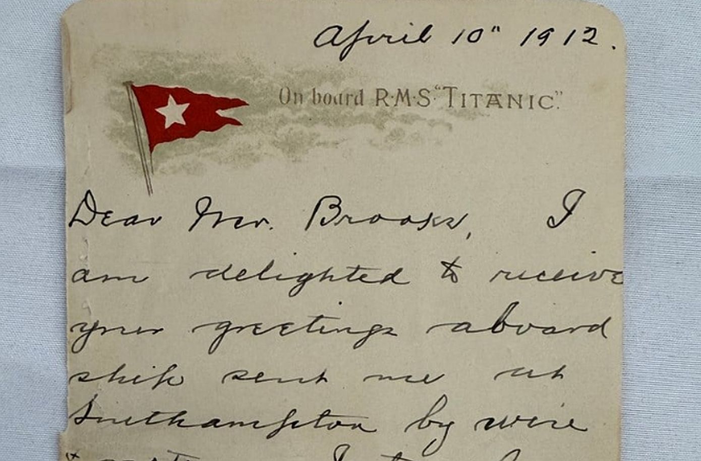 Μια κάρτα που έγραψε μέσα στο πλοίο ένας από τους πιο γνωστούς επιζώντες του Τιτανικού, λίγες ημέρες πριν αυτό βυθιστεί, πωλήθηκε σε δημοπρασία έναντι 300.000 λιρών (399.000 δολαρίων).