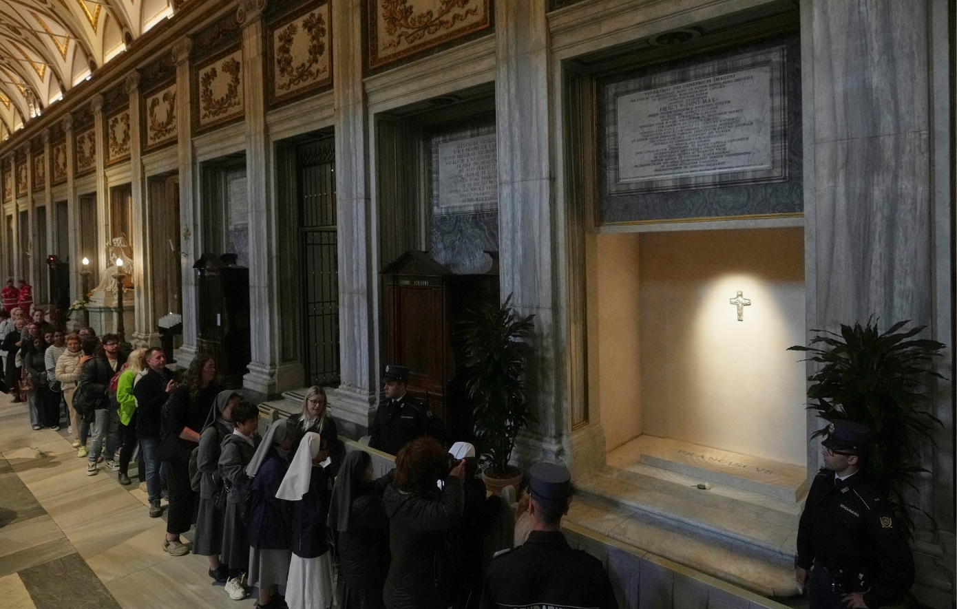Την ώρα αυτή, στον ναό βρίσκονται οι καθολικοί καρδινάλιοι, για να προσκυνήσουν το μνήμα του Αργεντινού ποντίφικα.