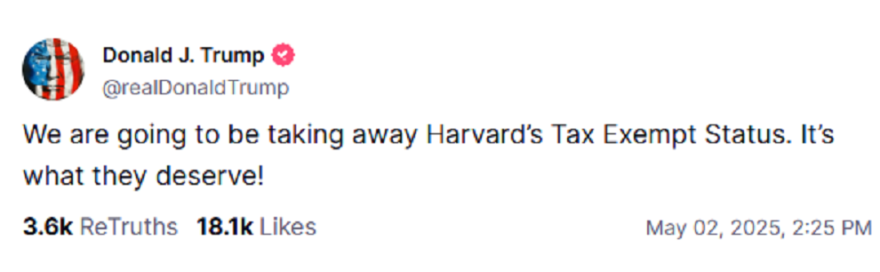 «Θα αφαιρέσουμε το καθεστώς απαλλαγής από φόρους από το Χάρβαρντ. Αυτό τους αξίζει!».