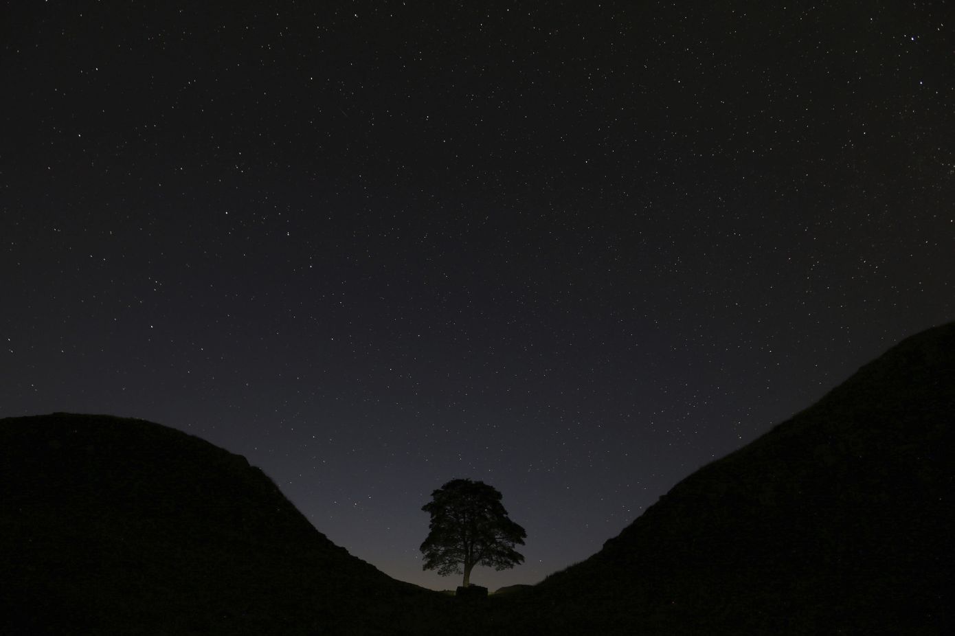 Το Sycamore Gap, ένας ψευδοπλάτανος ηλικίας 200 ετών, δέσποζε δίπλα στο ιστορικό Τείχος του Αδριανού, απομονωμένο ανάμεσα σε δύο λόφους σε ένα εντυπωσιακό τοπίο του Εθνικού Πάρκου Νορθάμπερλαντ, στη βόρεια Αγγλία.