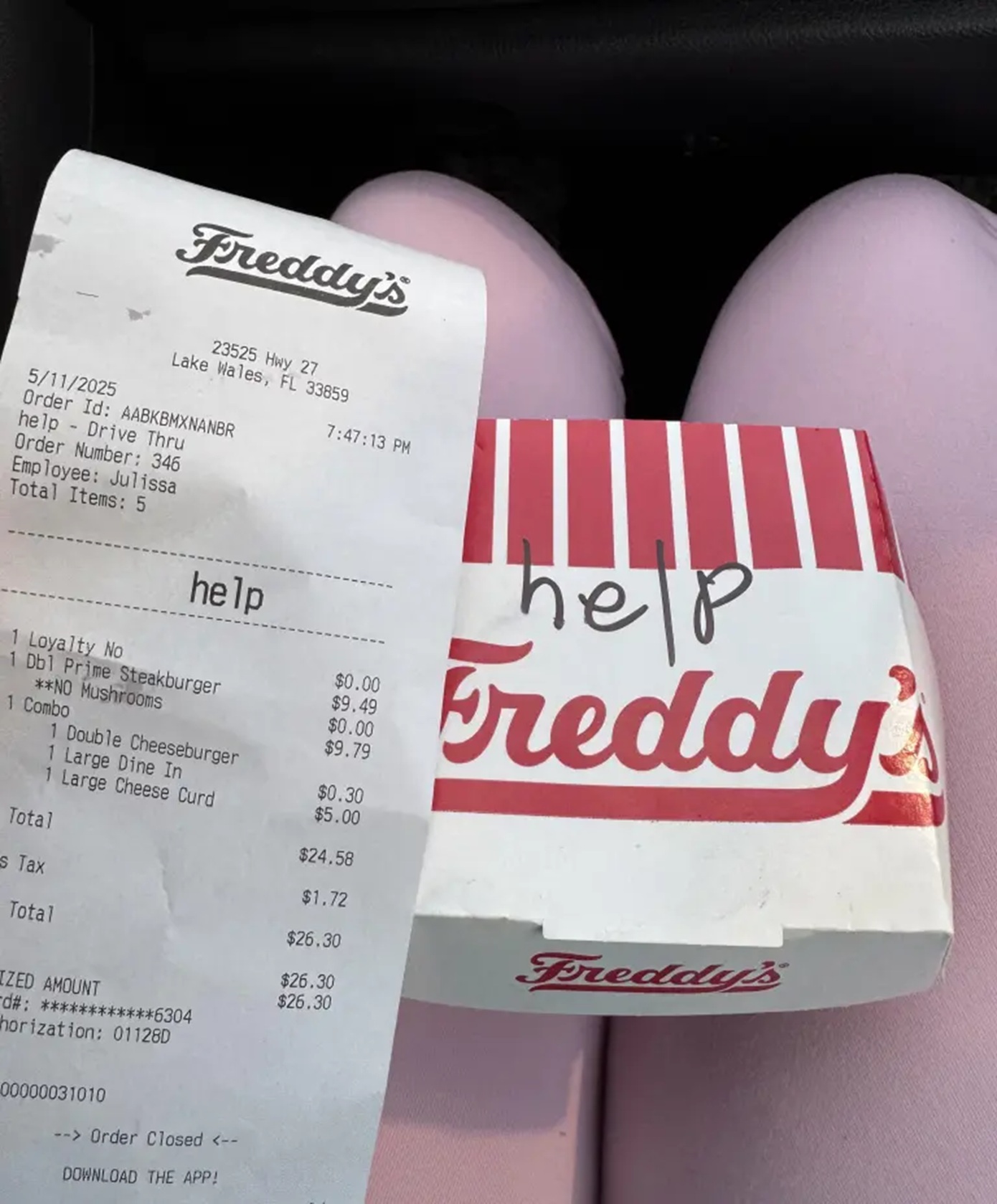 Το δείπνο μιας πελάτισσας σε ένα φαστ φουντ συνοδεύτηκε από ένα τρομακτικό σημείωμα μίας λέξης — αφήνοντάς την σε αμηχανία σχετικά με το πώς να διαχειριστεί την κατάσταση.