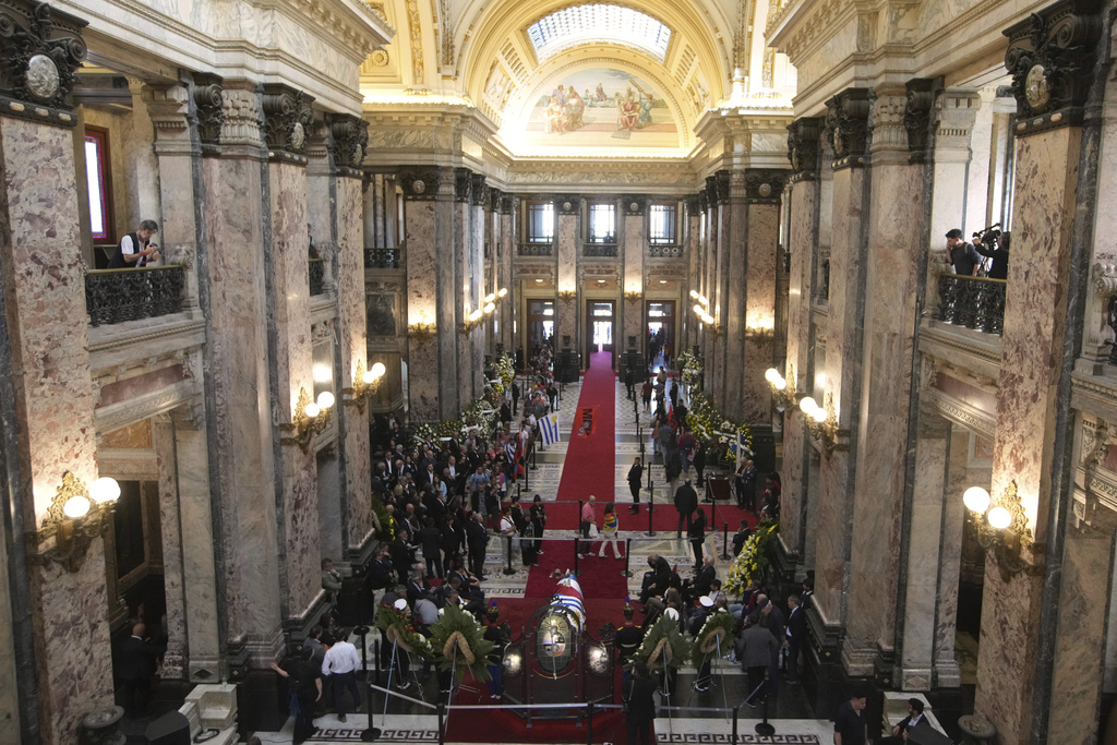 Υπό τους ήχους του «A don José», ενός παραδοσιακού τραγουδιού που συνδέεται με την αριστερά στην Ουρουγουάη, η νεκρική πομπή έφθασε στο Κοινοβούλιο, όπου θα τελεστεί αγρυπνία. Η κυβέρνηση έχει κηρύξει τριήμερο εθνικό πένθος.