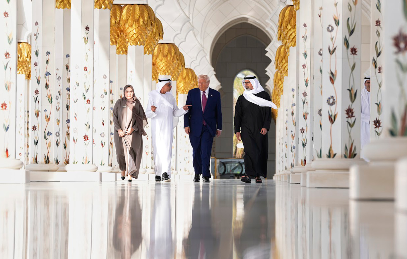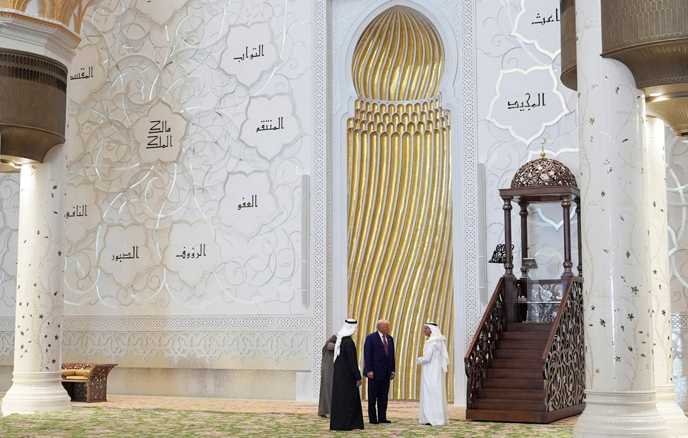 Οι δύο ηγέτες επισκέφθηκαν στη συνέχεια το Μεγάλο Τέμενος του Σεΐχη Ζαγιέντ, με τους λευκούς μιναρέδες και τους εκθαμβωτικούς θόλους. «Είναι τόσο όμορφο», είπε στους δημοσιογράφους ο Τραμπ μέσα στο τζαμί, το οποίο, όπως είπε, ήταν κλειστό λόγω της περίστασης.