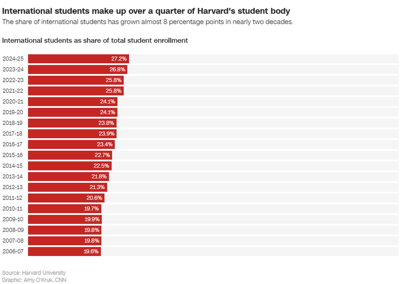 Η απόφαση αυτή θα μπορούσε να επηρεάσει περισσότερο από το ένα τέταρτο των σε μεγάλο βαθμό διεθνών φοιτητών του Χάρβαρντ, οι οποίοι έχουν περιέλθει σε αγωνία και σύγχυση από την ανακοίνωση. Οι καθηγητές προειδοποιούν ότι μια μαζική έξοδος ξένων φοιτητών απειλεί να καταπνίξει την ακαδημαϊκή ικανότητα του ιδρύματος, ακόμη και όταν αυτό μάχεται εναντίον της διοίκησης Τραμπ για την ιδεολογική του αυτονομία, σύμφωνα με το CNN.