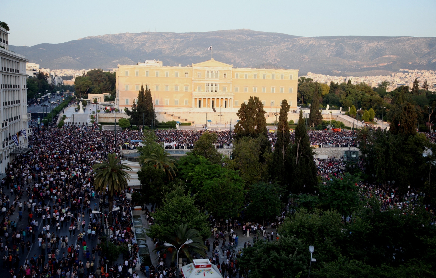 2011: Εμφανίζονται για πρώτη φορά οι «Αγανακτισμένοι στο Σύνταγμα». Χιλιάδες πολίτες, εμπνευσμένοι από τις διαμαρτυρίες στην Ισπανία, συγκεντρώνονται αυθόρμητα μπροστά στη Βουλή, εκφράζοντας ειρηνικά την αντίθεσή τους στα μέτρα λιτότητας και ανοίγοντας νέο κεφάλαιο στις διαδηλώσεις στην Ελλάδα.