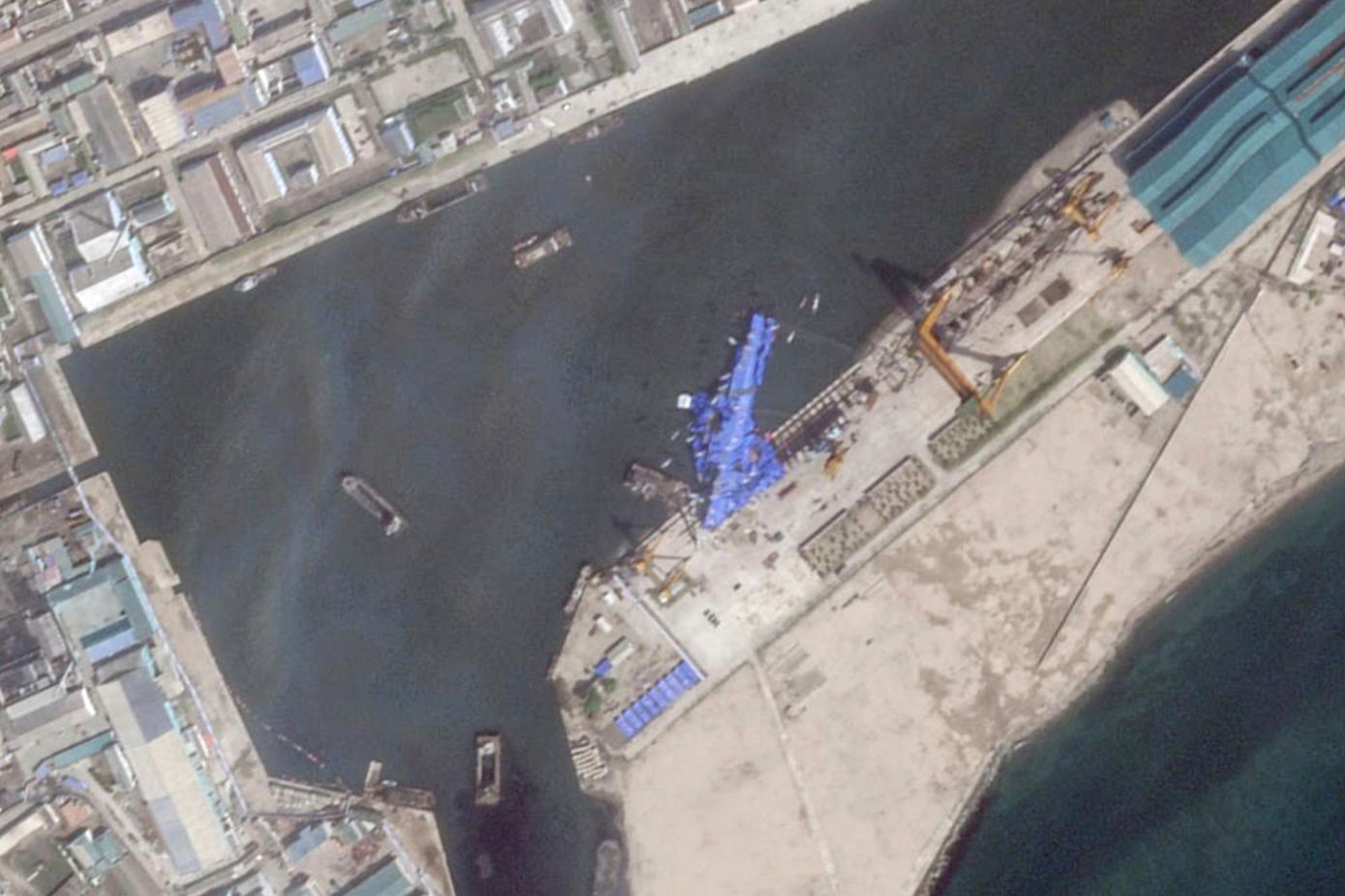 Δορυφορικές εικόνες της MAXAR αποκαλύπτουν το φιάσκο με το πολεμικό πλοίο στη Βόρεια Κορέα που έγινε μπροστά στα μάτια του ηγέτη της Κιμ Γιονγκ Ουν.