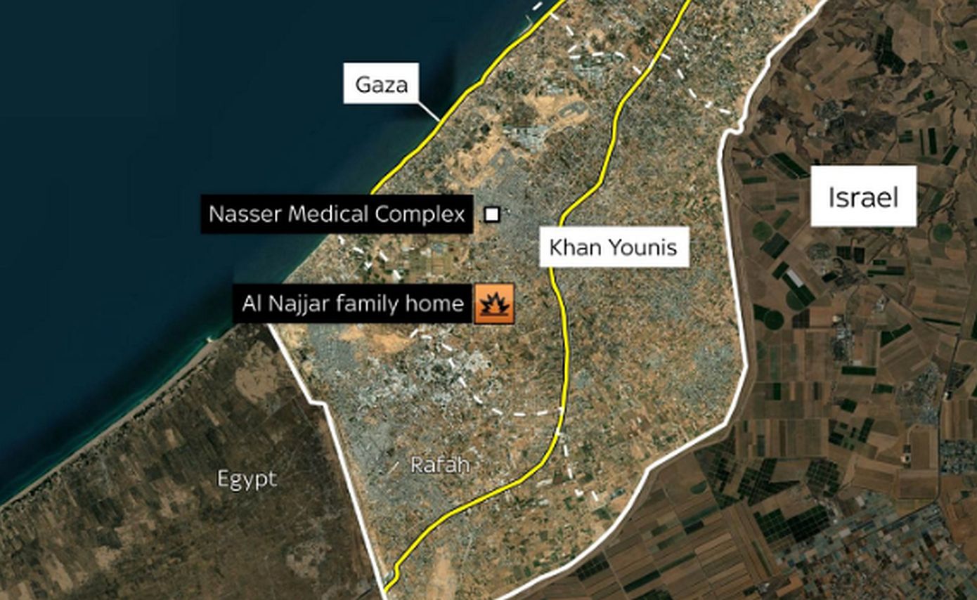 Ο διευθυντής του υπουργείου Υγείας, Δρ Μουνίρ Αλμπούρς, δήλωσε στην πλατφόρμα X (πρώην Twitter) ότι το σπίτι της οικογένειας αλ-Νατζάρ χτυπήθηκε λίγα λεπτά αφότου ο πατέρας της οικογένειας, Χάμντι, επέστρεψε αφού είχε μεταφέρει τη σύζυγό του στη δουλειά. Σύμφωνα με την ίδια πηγή, το μεγαλύτερο από τα παιδιά της γιατρού ήταν μόλις 12 ετών.