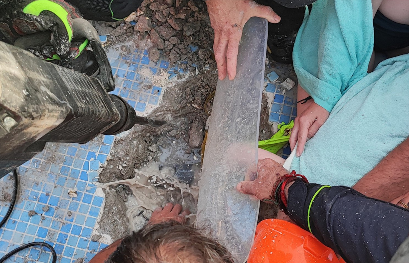 Δυνάμεις της Πυροσβεστικής έσπευσαν στο ξενοδοχείο και επιχείρησαν να απελευθερώσουν τον 4χρονο, χωρίς να τα καταφέρουν. Έτσι, αποστράγγισαν την πισίνα με αντλίες και έσκαψαν το σημείο του σωλήνα.