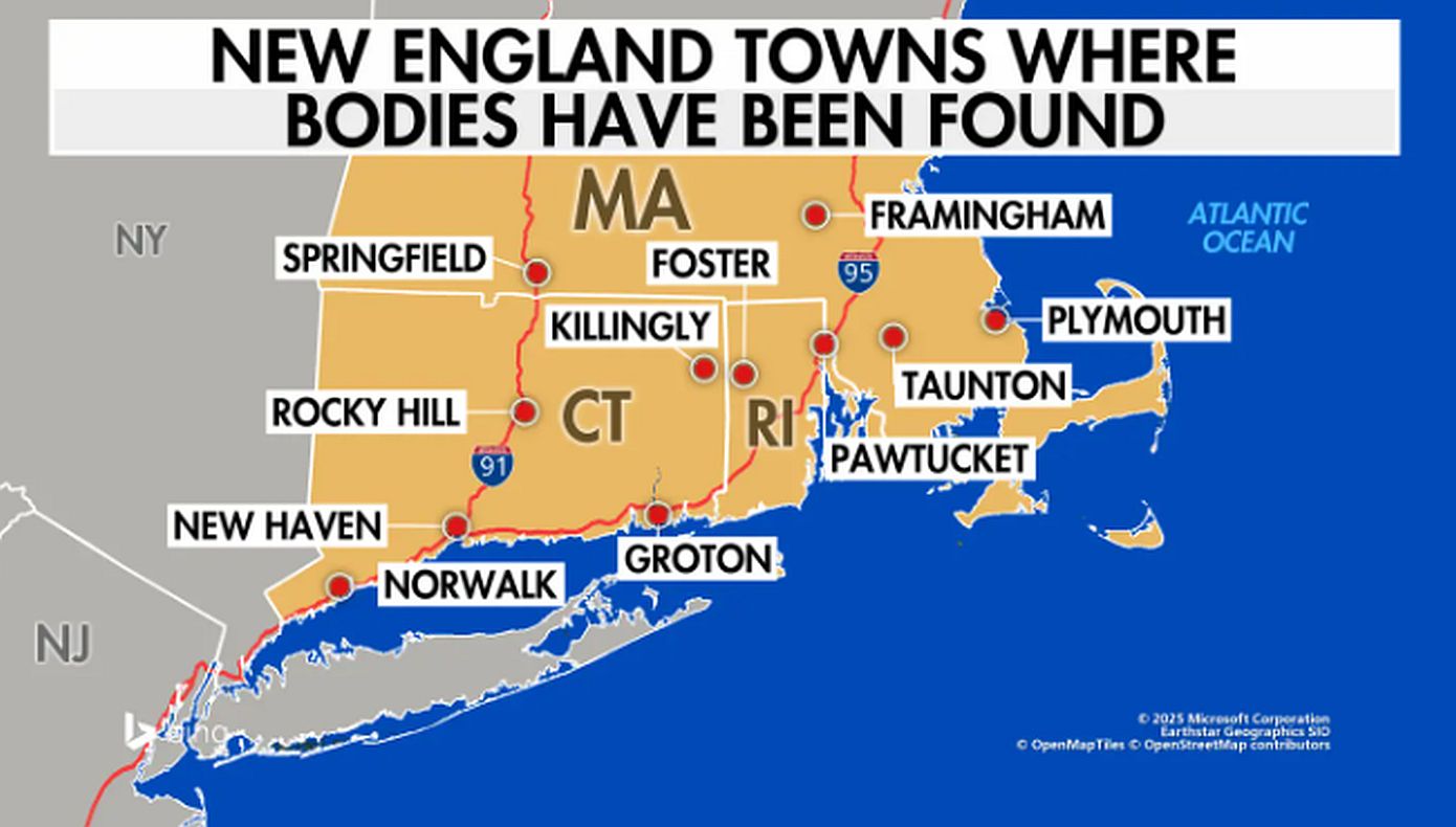 Από τον Μάρτιο του 2025, τουλάχιστον 13 σοροί έχουν βρεθεί σε όλη τη Μασαχουσέτη, το Κονέκτικατ, τη Ρόουντ Άιλαντ και το Μέιν, με πολλά πτώματα να έχουν εντοπιστεί σε απομονωμένες ή δασώδεις περιοχές.