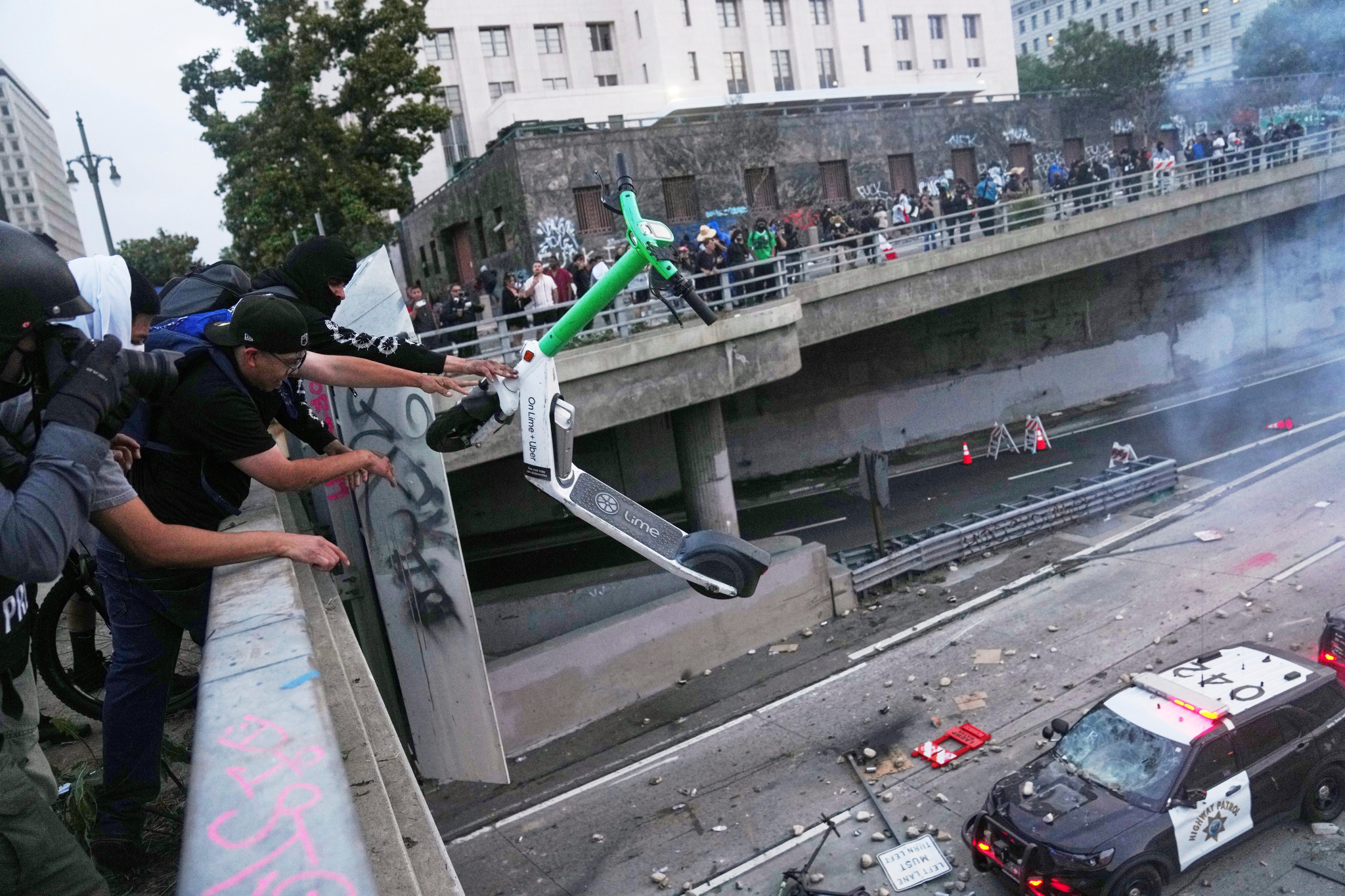 Νωρίτερα, η ένταση κλιμακώθηκε, καθώς χιλιάδες διαδηλωτές βγήκαν στους δρόμους ως απάντηση στην έκτακτη αποστολή της Εθνοφρουράς από τον πρόεδρο Ντόναλντ Τραμπ, αποκλείοντας έναν μεγάλο αυτοκινητόδρομο και βάζοντας φωτιά σε αυτοκίνητα.