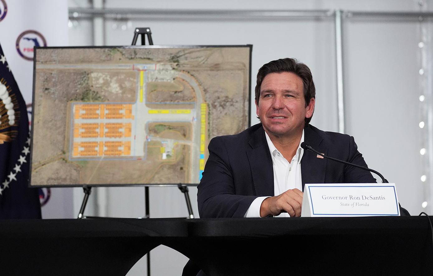 Δημοκρατικοί και ακτιβιστές όμως, άσκησαν έντονη κριτική στη δημιουργία του κέντρου κράτησης. Ο πρώην βουλευτής και πρώην Ρεπουμπλικανός Ντέιβιντ Τζόλιπου τώρα διεκδικεί τη θέση του κυβερνήτη της Φλόριντα ως Δημοκρατικός, αποκάλεσε την εγκατάσταση «ανάλγητο πολιτικό κόλπο».