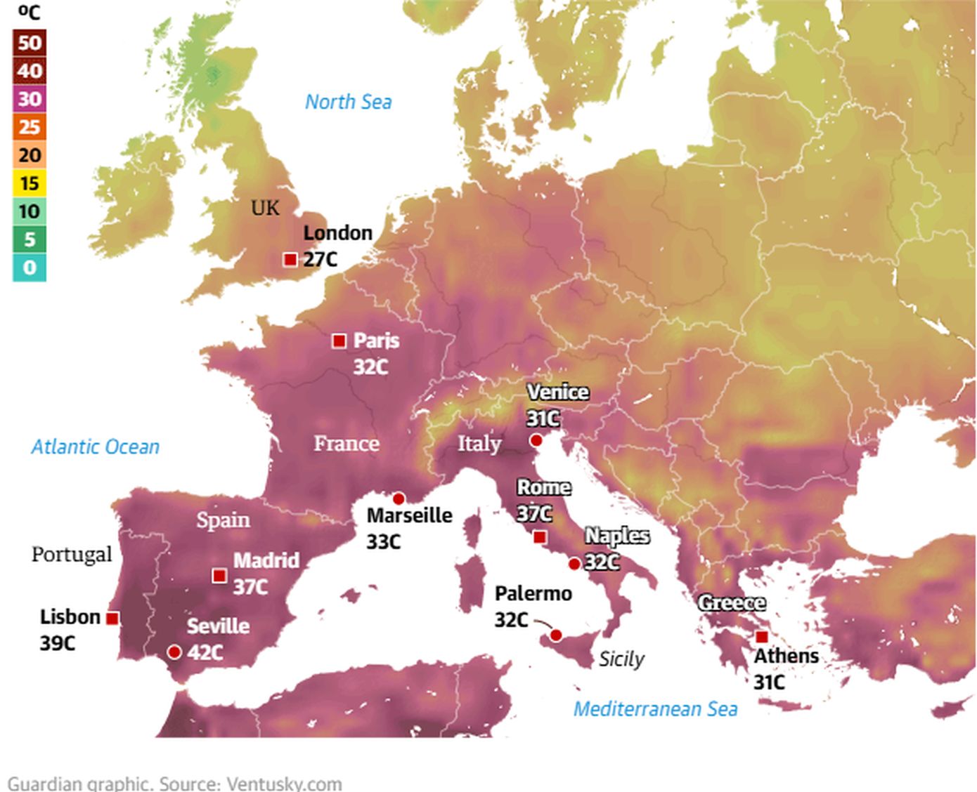 «Όταν βλέπεις τον χάρτη της Ευρώπης, είναι τρομακτικός», είπε η Ριμπέρα μιλώντας για πρωτοφανείς θερμοκρασίες τον Ιούνιο από την Ισπανία και την Πορτογαλία έως το Ηνωμένο Βασίλειο.