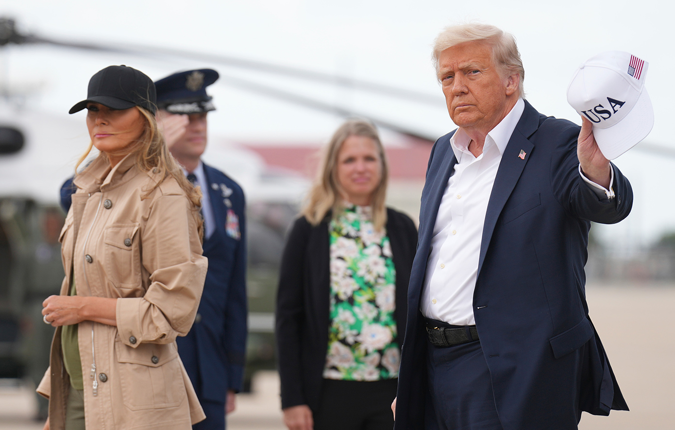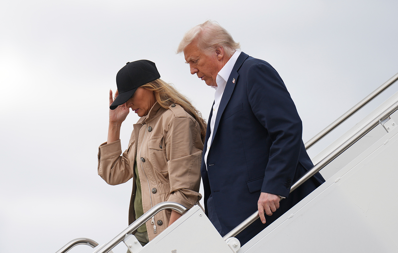 Ο Αμερικανός πρόεδρος και η σύζυγός του Μελάνια πραγματοποιούν επίσκεψη λίγων ωρών, ακριβώς μία εβδομάδα μετά τις πλημμύρες και ενώ περισσότεροι από 170 άνθρωποι παραμένουν αγνοούμενοι.