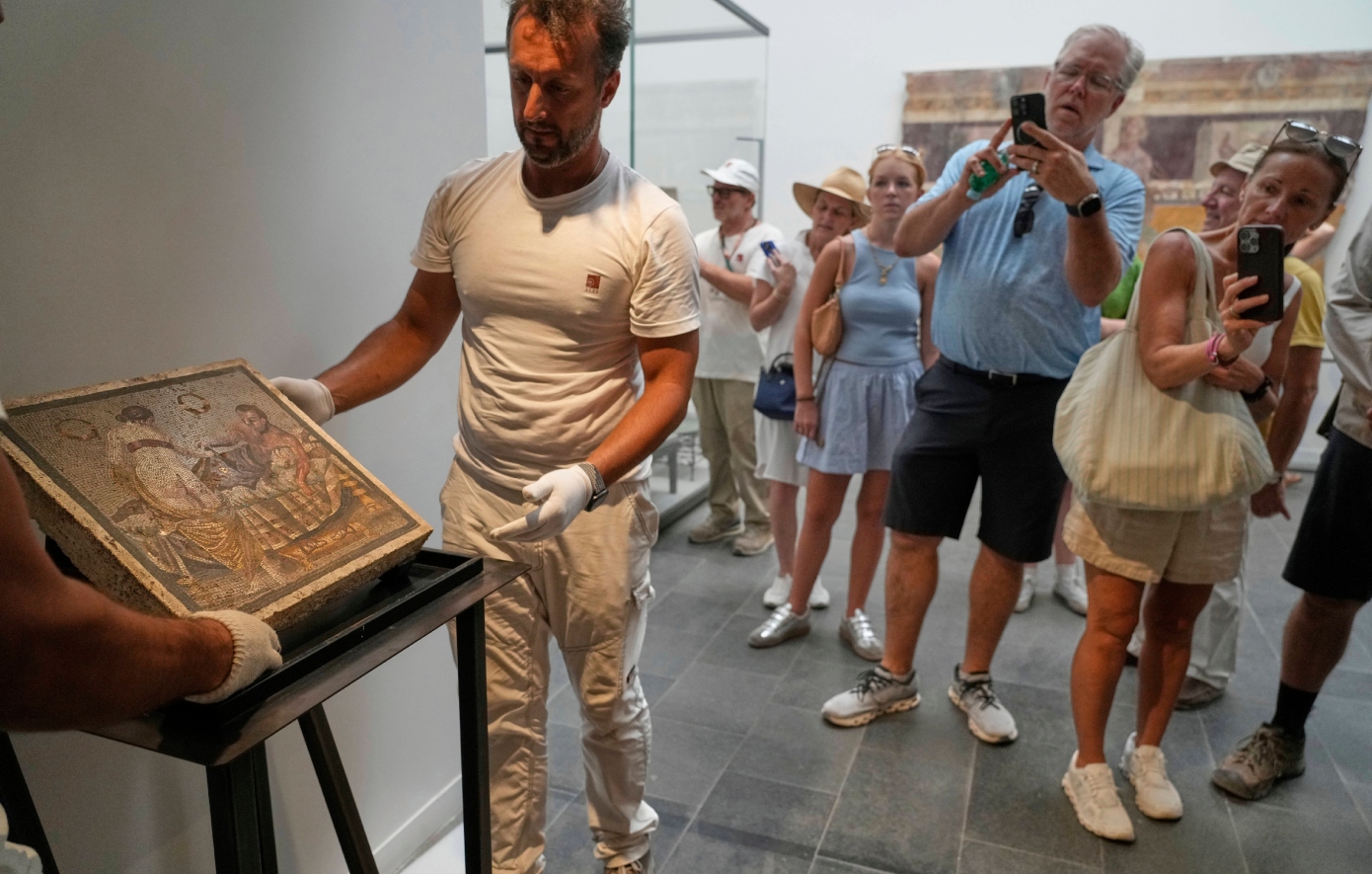 Το ψηφιδωτό θα εκτεθεί σύντομα στην Πομπηία μαζί με εκατοντάδες άλλα αντικείμενα και αρχαιολογικά ευρήματα, στην τοποθεσία της αρχαίας πόλης που καταστράφηκε από την έκρηξη του Βεζούβιου το 79 μ.Χ.