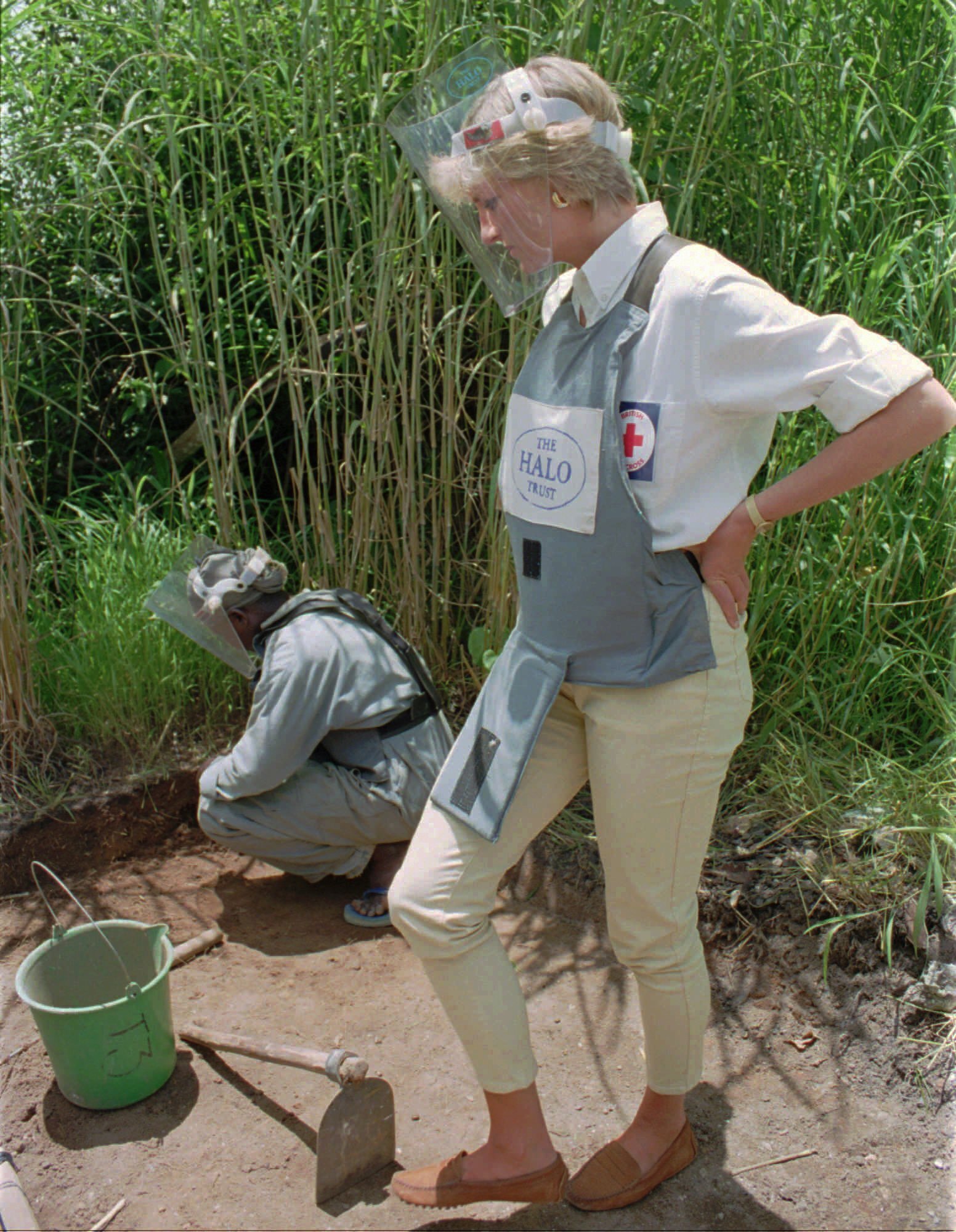 Η Νταϊάνα είχε ταξιδέψει στην Ουάμπο της Ανγκόλας τον Ιανουάριο του 1997 και είχε φωτογραφηθεί να περπατά μέσα σε ναρκοπέδιο φορώντας αλεξίσφαιρο γιλέκο και προστατευτική προσωπίδα.