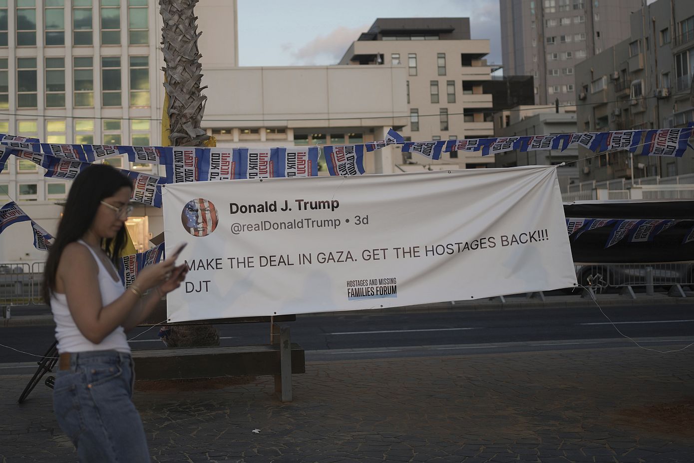 Η πορεία των διαδηλωτών ξεκίνησε από την αποκαλούμενη Πλατεία των Ομήρων στο κέντρο του Τελ Αβίβ με προορισμό το παράρτημα της αμερικανικής πρεσβείας στην οδό Χαγιαρκόν. Οι συμμετέχοντες φώναζαν συνθήματα, καλώντας τον πρόεδρο των ΗΠΑ Ντόναλντ Τραμπ να ασκήσει πιέσεις στον πρωθυπουργό του Ισραήλ Μπενιαμίν Νετανιάχου προκειμένου να καταλήξει σε συμφωνία εκεχειρίας με τη Χαμάς.
