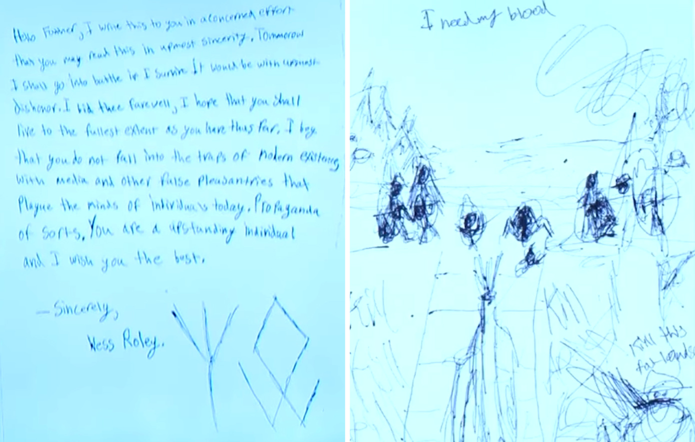 Η αινιγματική επιστολή απηχούσε τις αναρτήσεις του Ρόλεϊ στα μέσα κοινωνικής δικτύωσης κατά τις ώρες που προηγήθηκαν του πυροβολισμού, συμπεριλαμβανομένης μιας που έλεγε ότι «θα πάει για κυνήγι».