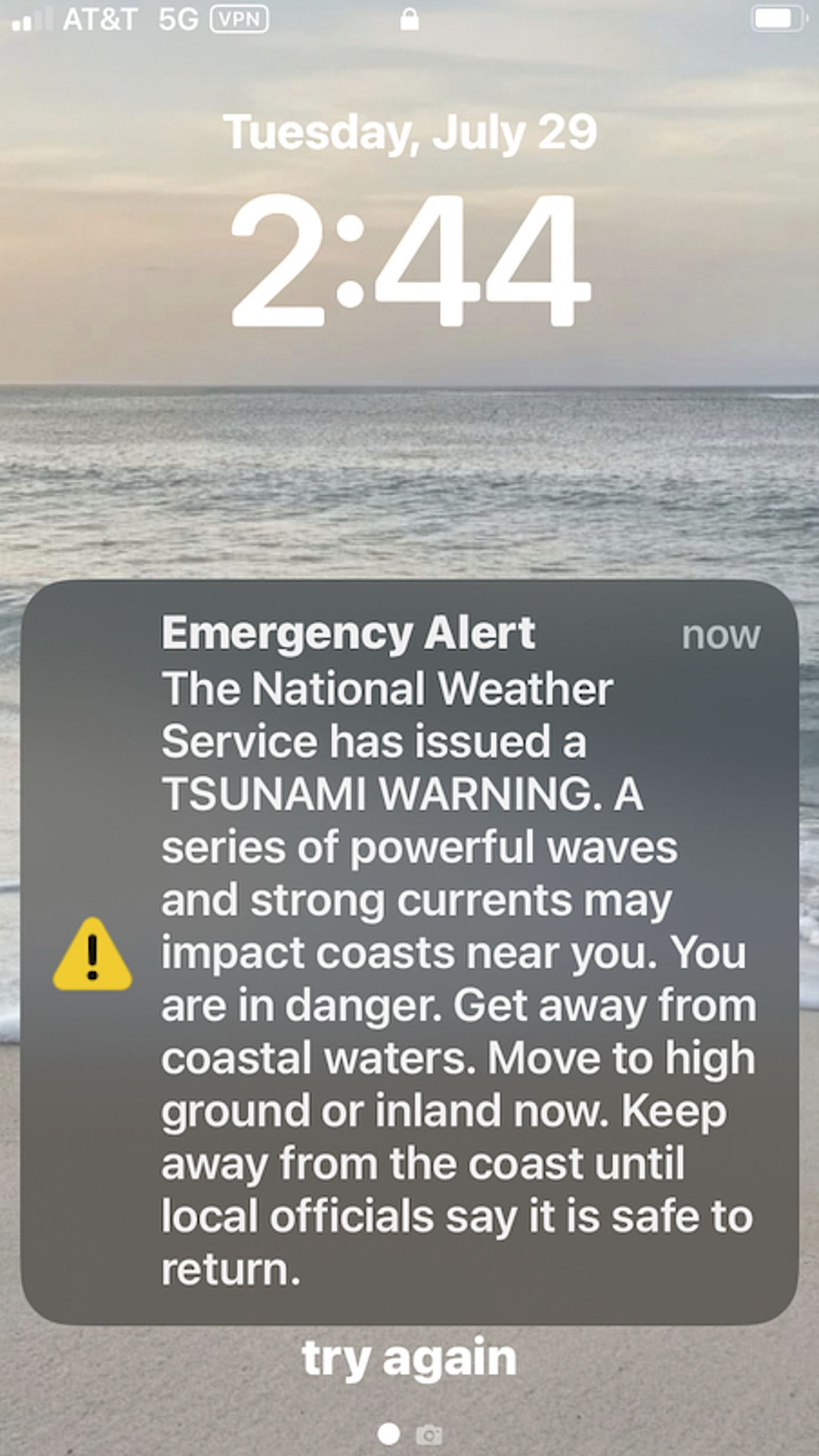 Το αμερικανικό κέντρο έγκαιρης προειδοποίησης για τσουνάμι στον Ειρηνικό Ωκεανό (PTWC) εκτίμησε πως υπήρχε ενδεχόμενο να πλήξουν «επικίνδυνα» σεισμογενή θαλάσσια κύματα τις ακτές στις πολιτείες Καλιφόρνια, Όρεγκον και Ουάσιγκτον, στη Χαβάη, στο Γκουάμ και αλλού. Η ίδια πηγή εκτίμησε πως διέτρεχαν κίνδυνο οι ακτές του Ισημερινού.