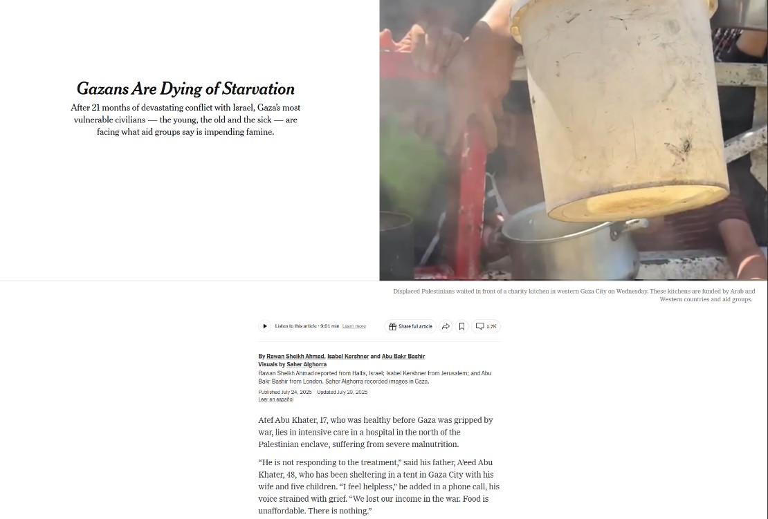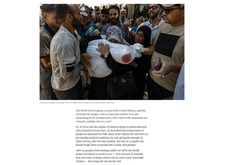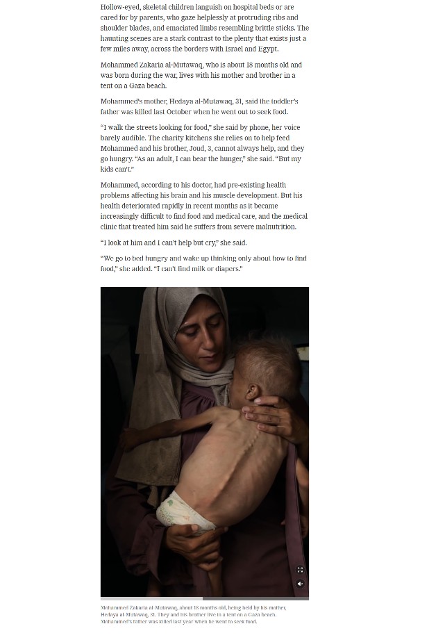 «Πρόσφατα δημοσιεύσαμε μια ιστορία για τους πιο ευάλωτους πολίτες της Γάζας, συμπεριλαμβανομένου του Μοχάμεντ Ζακάρια αλ-Μουταουάκ, που είναι περίπου 18 μηνών και πάσχει από σοβαρό υποσιτισμό», δήλωσε εκπρόσωπος του μέσου, σύμφωνα με τη New York Post.
