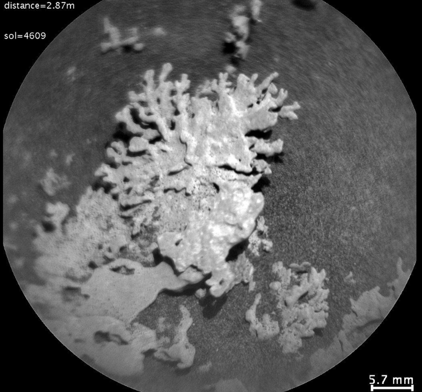 Η αποστολή Curiosity της NASA κατέγραψε μια παράξενη πέτρα σε σχήμα κοραλλιού στην επιφάνεια του Άρη, προκαλώντας νέες εικασίες για ίχνη αρχαίας ζωής στον Κόκκινο Πλανήτη. Η στριφογυριστή, εξωγήινη μορφή, σύμφωνα με τη NASA, σχηματίστηκε από τον άνεμο και το πέρασμα του χρόνου, πιθανόν πριν από δισεκατομμύρια χρόνια, όταν το νερό διέσχιζε την επιφάνεια του Άρη. Οι εικόνες προκάλεσαν αναστάτωση στο διαδίκτυο, με χρήστες να αναφέρουν πως τα κοράλλια αποτελούν αληθινά σημάδια αρχαίων μορφών ζωής, μαζί με τους αρχαίους ποταμούς, χαρακτηρίζοντας την ανακάλυψη ως «τεράστια». Άλλοι ανέφεραν στα μέσα κοινωνικής δικτύωσης πως πρόκειται για απολιθωμένο ξένο υλικό ζωής που υπήρχε εκεί όλον αυτόν τον καιρό.