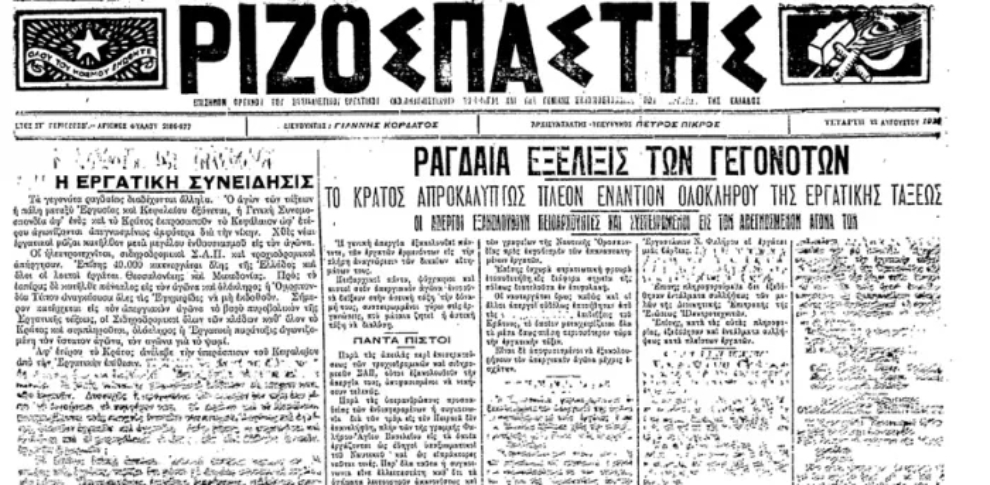 1923: Ξεσπά στον Πειραιά η μεγαλύτερη πανεργατική απεργία στην Ελλάδα, με μαζική συγκέντρωση στο Πασαλιμάνι. Η κινητοποίηση καταστέλλεται βίαια από στρατό και αστυνομία, έχοντας ως τραγικό απολογισμό 11 νεκρούς και δεκάδες τραυματίες. Οι απεργοί διεκδικούν αύξηση ημερομισθίων, μείωση ωρών εργασίας και προστασία για τους ανήλικους εργαζομένους, βάζοντας τις βάσεις για τα μεταγενέστερα εργατικά δικαιώματα.