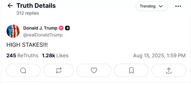 Λίγο πριν την αναχώρησή του για την Αλάσκα, ο Ντόναλντ Τραμπ προχώρησε σε μια αινιγματική ανάρτηση, η οποία πυροδοτεί το κλίμα ενόψει της συνάντησής του με τον πρόεδρο της Ρωσίας, Βλαντίμιρ Πούτιν. Με τρία θαυμαστικά, ο Αμερικανός πρόεδρος έγραψε «Υψηλό διακύβευμα!!!», υπογραμμίζοντας το πλαίσιο των συνομιλιών που αναμένεται να πραγματοποιηθούν σήμερα στο Άνκορατζ.